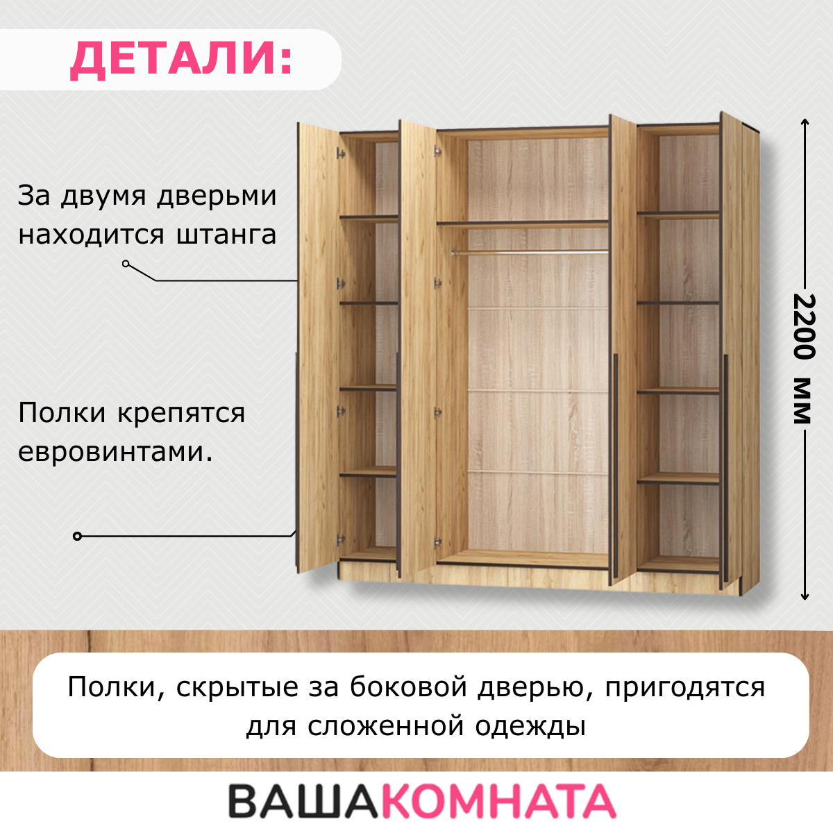 10 цен на Шкаф четырехдверный распашной "Бастион " 2,0 м, цвет дуб крафт золотой , 4 двери, материал ЛДСП