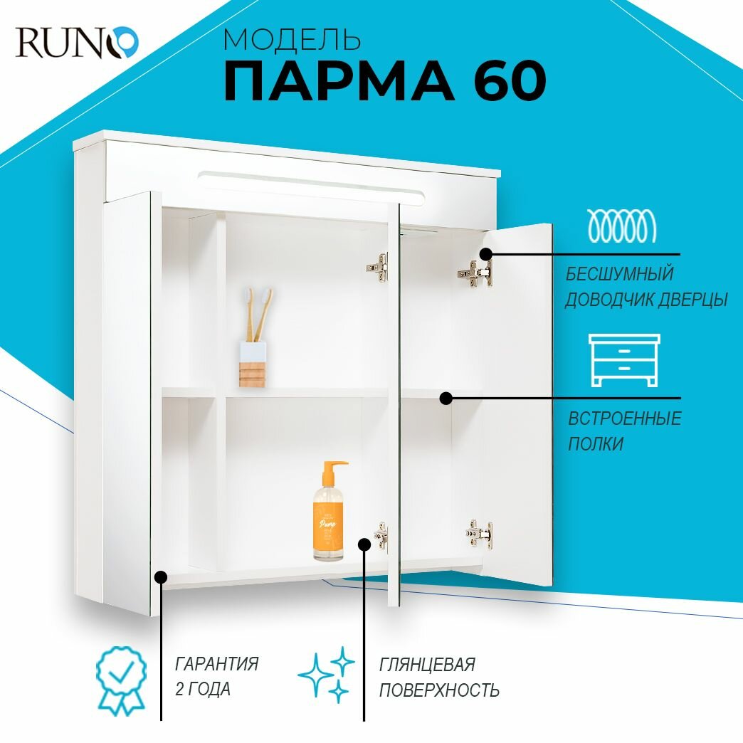 Шкаф в ванную с зеркалом с подсветкой Runo Парма 60 полка для ванной информация: