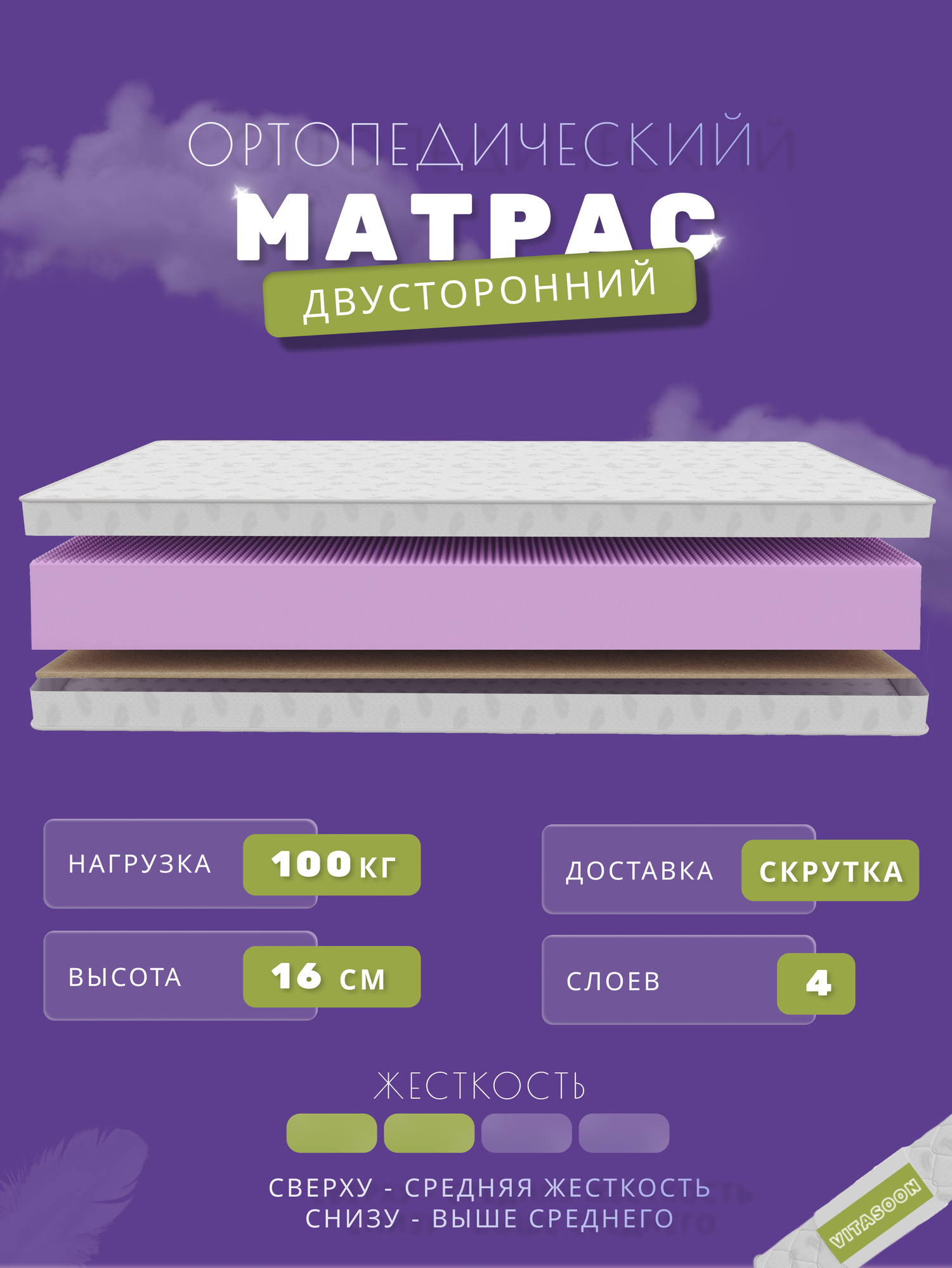Матрас беспружинный 160х180 см VitaSoon ComfortRoll 16 Ck, ортопедический, двуспальный, с кокосом, ППУ, разная жесткость, в рулоне 16 157 ₽