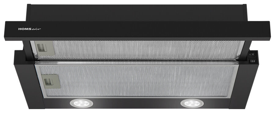 Вытяжка HOMSair Flat 60 Black/ встраиваемая, колыбельное управление, 2 скорости, 520 м3/ч, до 20 м2, 45 дБ, угольный фильтр CF110 - 1 шт, ШхВхД: 500х176х280 мм, черный цвет
