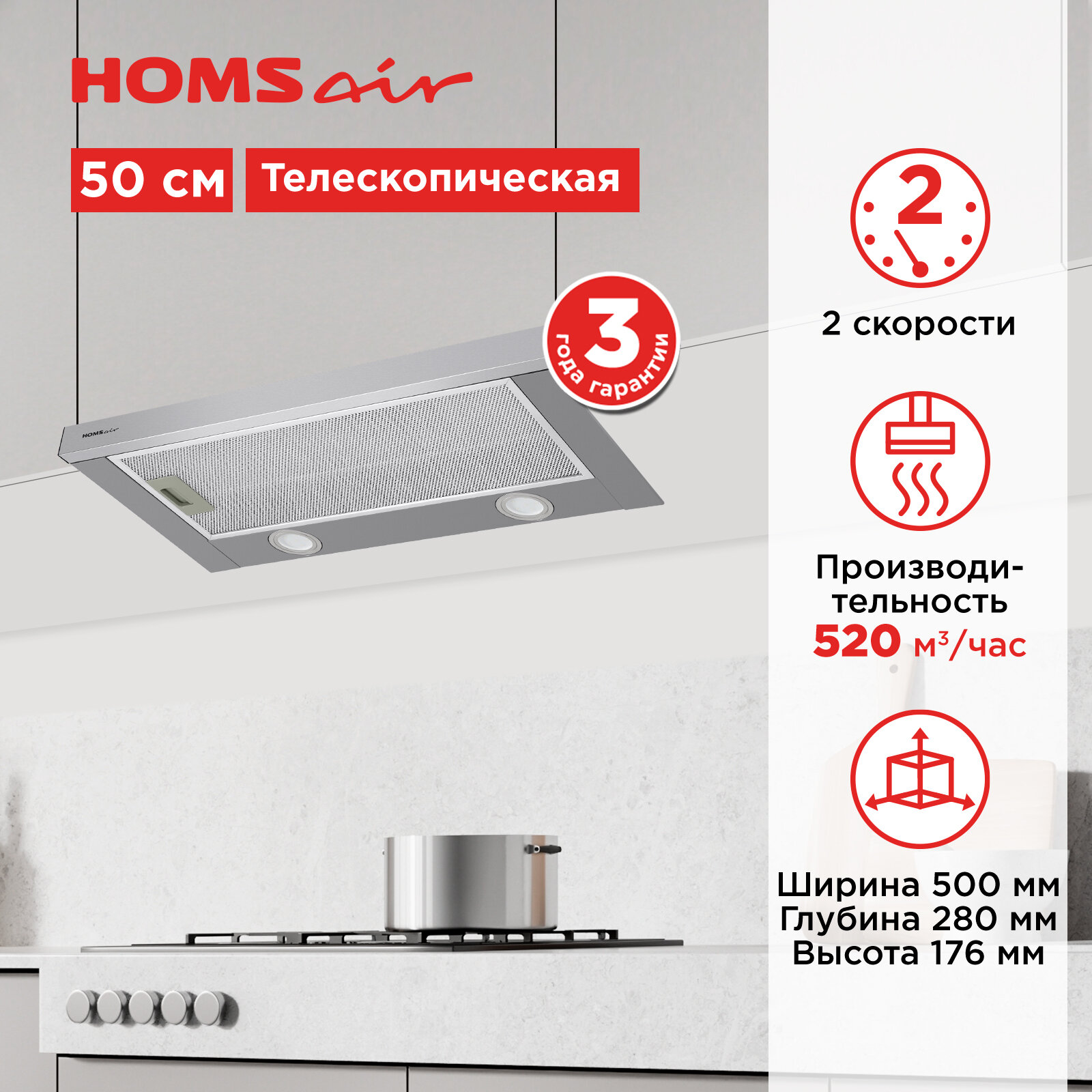 Вытяжка телескопическая HOMSair FLAT 50 серебристый/серебристый 11 149 ₽