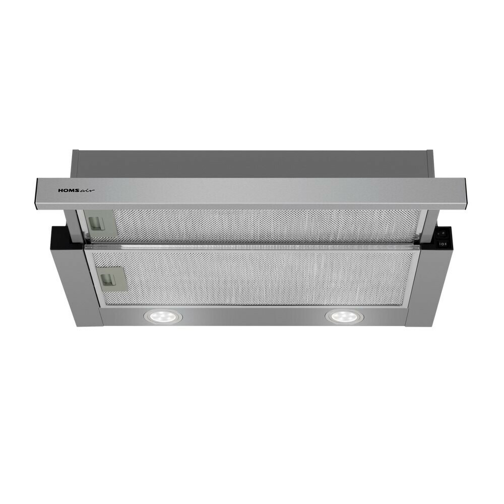 Вытяжка HOMSAir/ Тип: встраиваемая с выдвижной кареткой, Цвет: нержавеющая сталь• Управление: колыбельное• Ширина, мм: 600• Полная потребляемая мощность, Вт: 102• Количество скоростей: 2• Максимальная производительность, м3/ч: 520• Диаметр воздуховода, мм