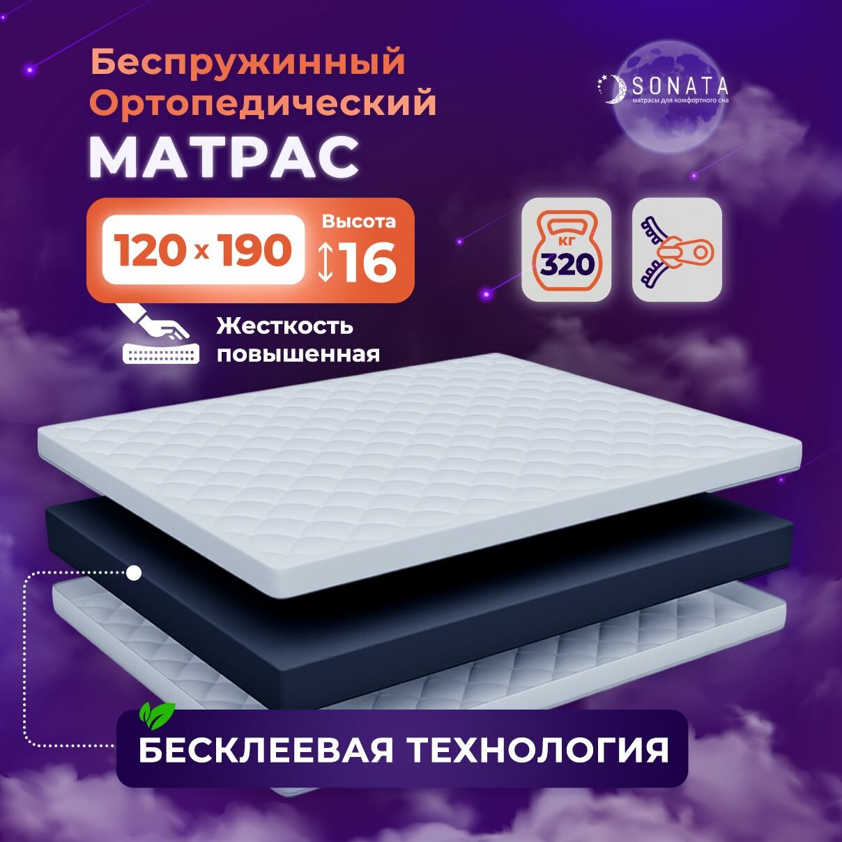 10 цен на Матрас SONATA, беспружинный, ортопедический, 120x190х16 см, белый