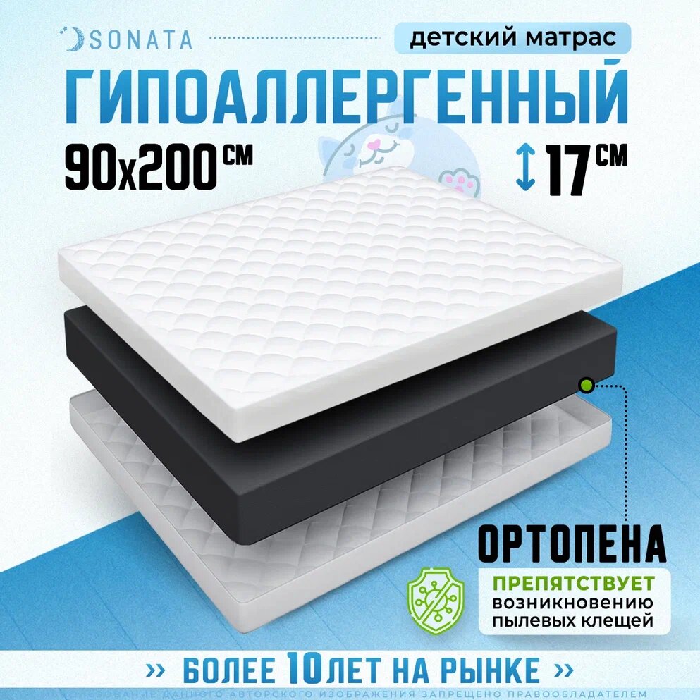 Отзывы на Матрас SONATA, беспружинный, ортопедический, 90x200х17 см, белый