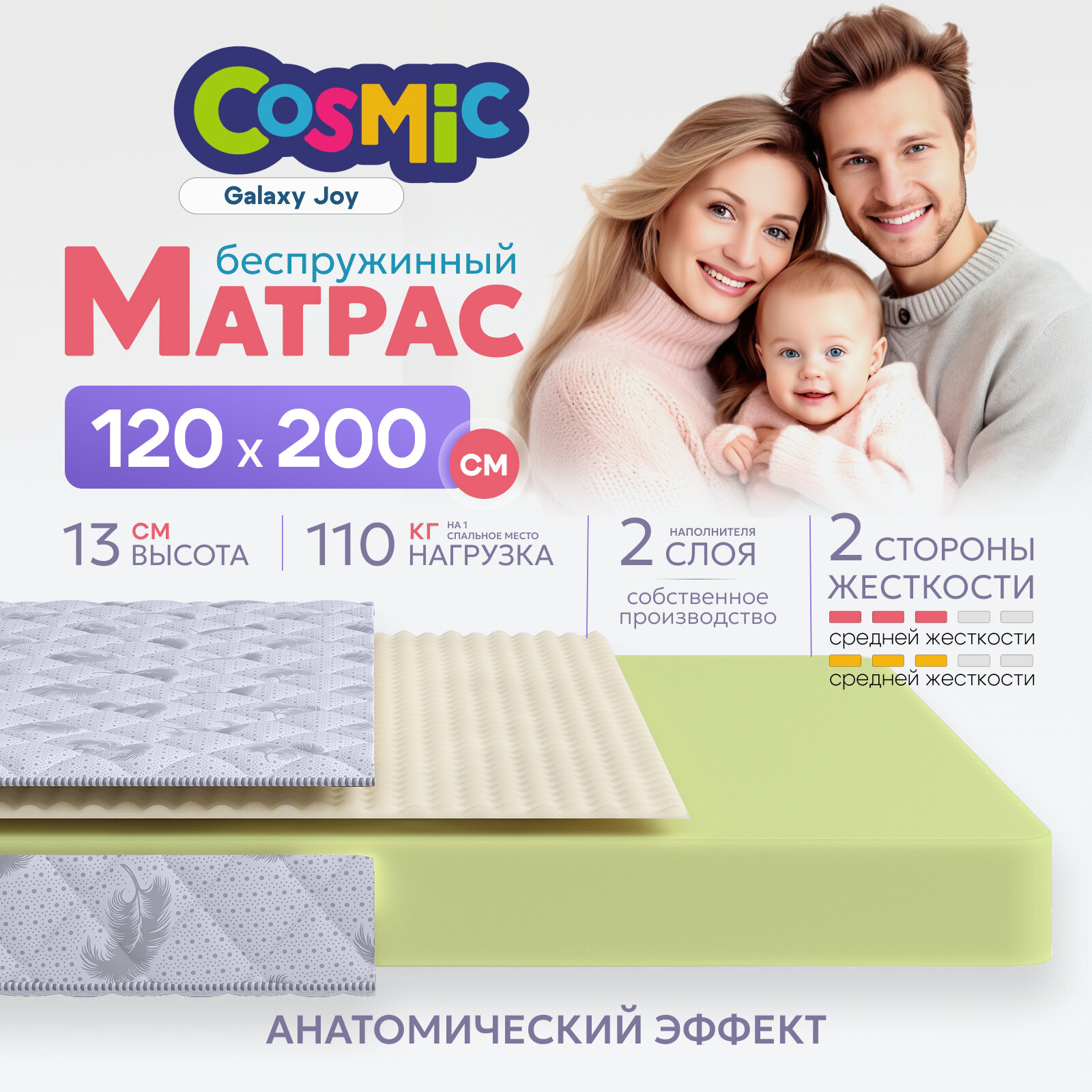 Матрас 120х195 беспружинный, анатомический, для кровати, Cosmic Galaxy Joy, средне-жесткий 13 см с одинаковой жесткостью 8 842 ₽