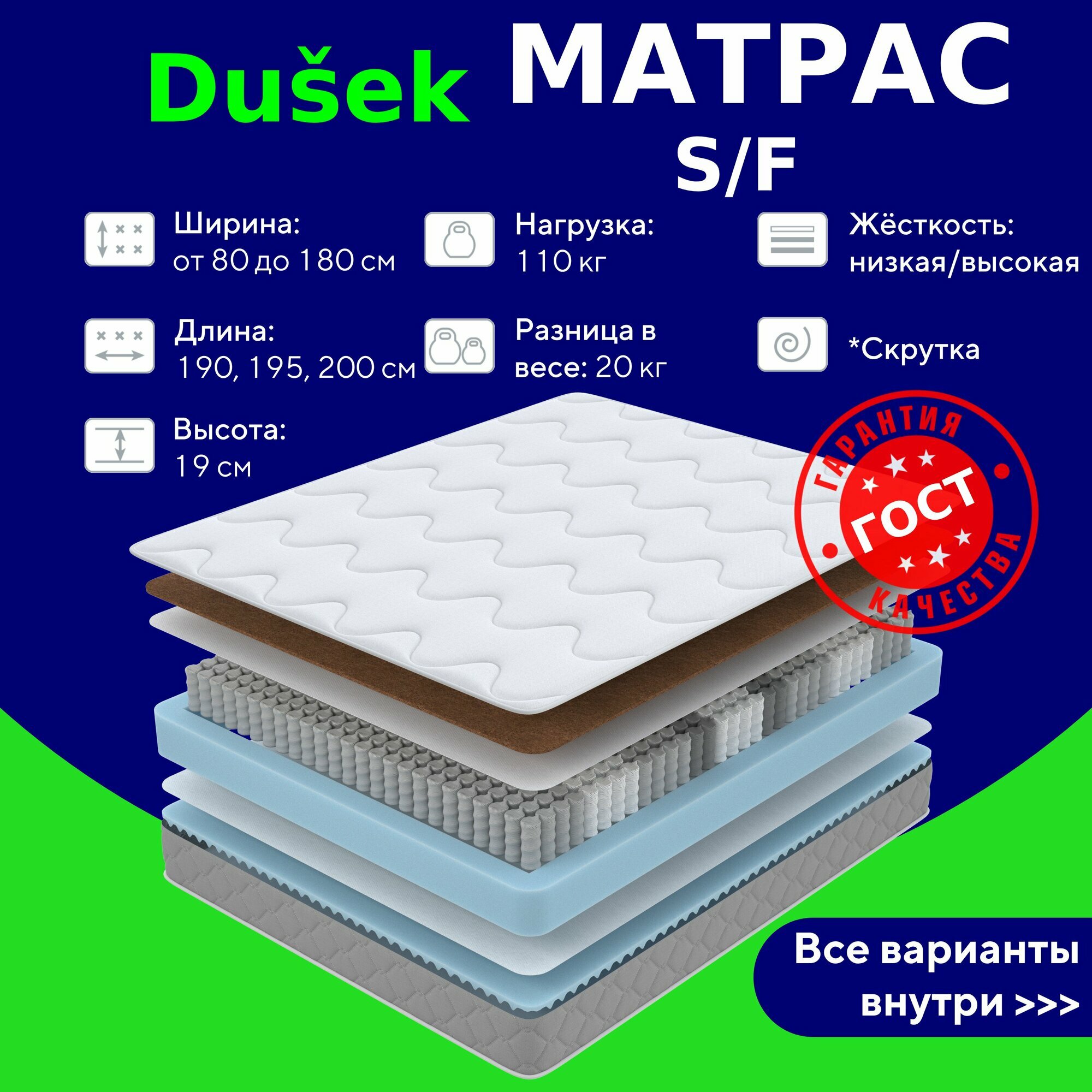 10 цен на Односпальный матрас 120х200 DUŠEK S/F ортопедический эффект жёсткость средний/жесткий независимый пружинный блок
