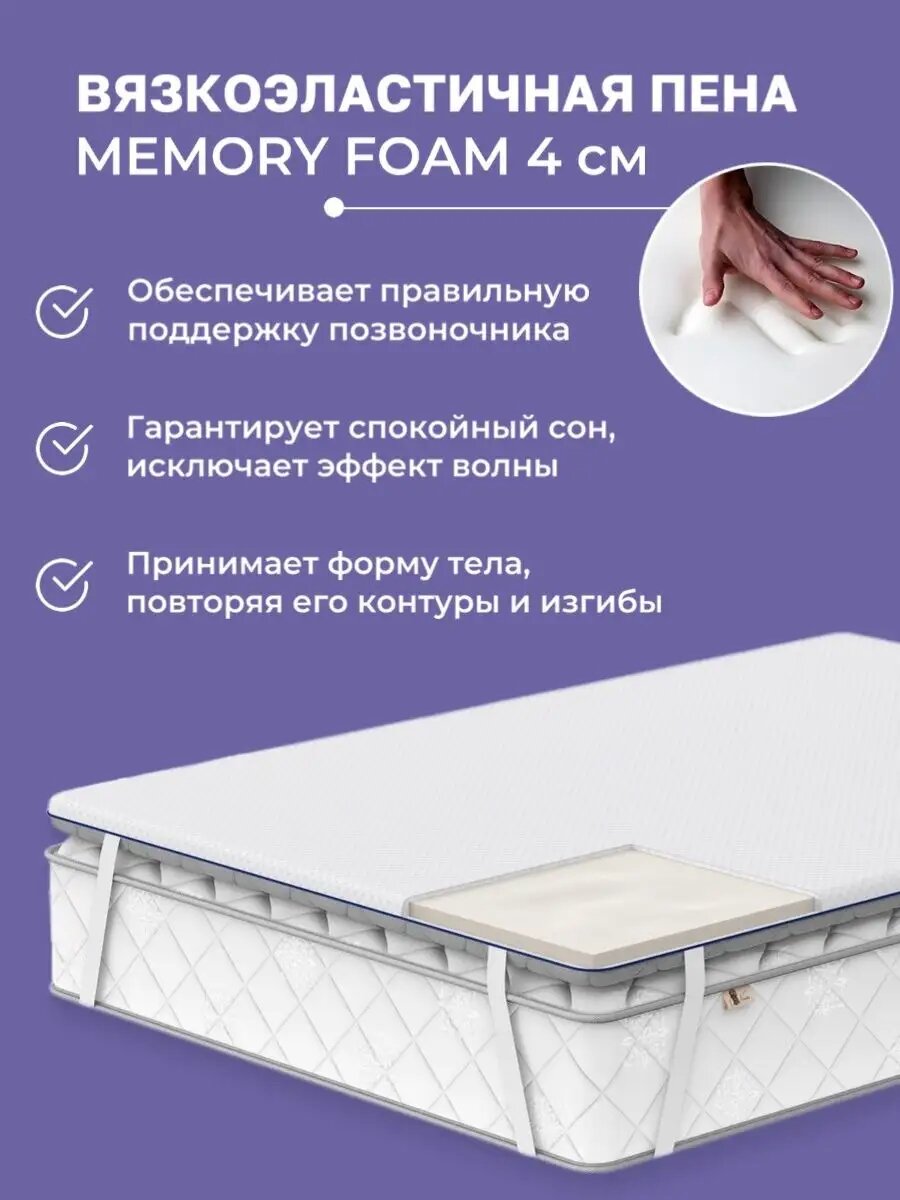 Матрас-топпер, Vento, для кровати, дивана, с эффектом памяти, фиксирующийся на резинках, 180х200 11 100 ₽
