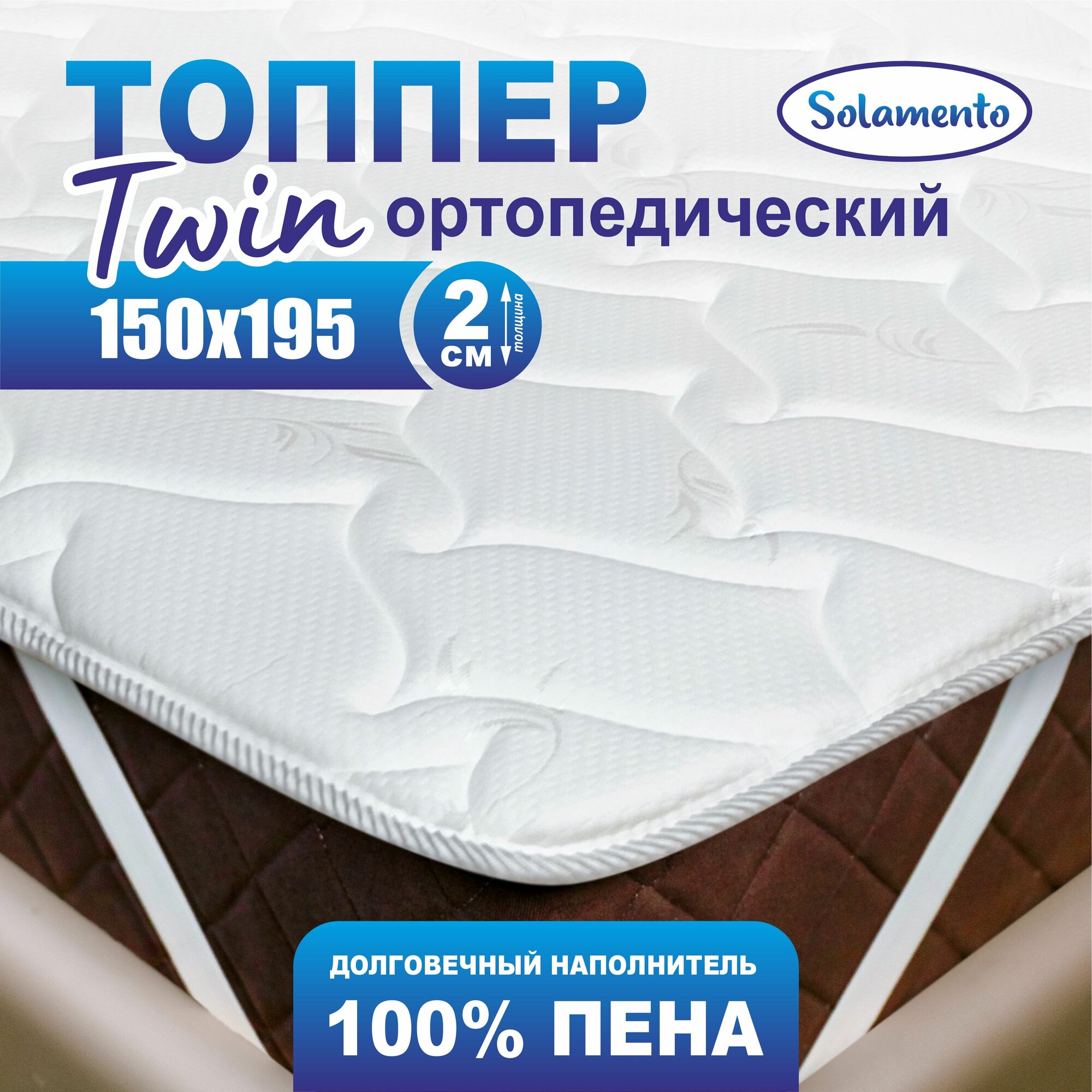Топпер наматрасник Solamento Twin 150х200, для кровати и дивана, беспружинный, ортопедический 5 159 ₽