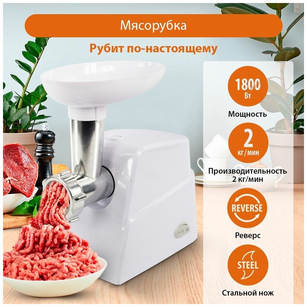 Мясорубка Аксион М321, 1500 Вт, реверс, защита двигателя, насадки для кеббе и колбас