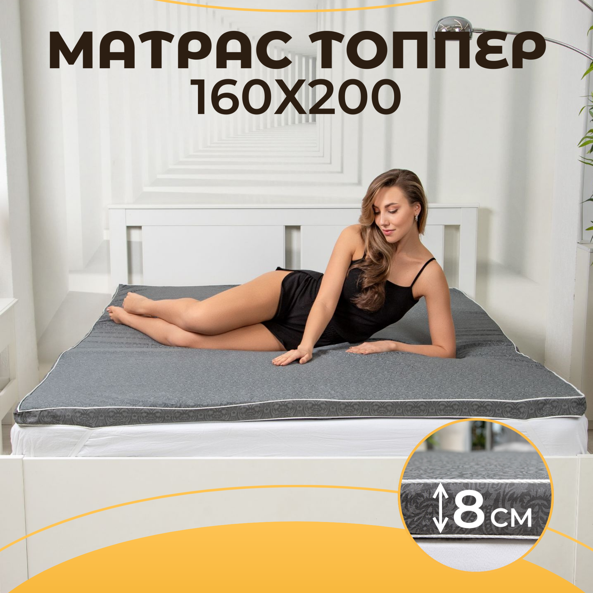 Топпер-матрас Шахслип 160 х 200 см, 8см, средней жесткости, съемный чехол информация: