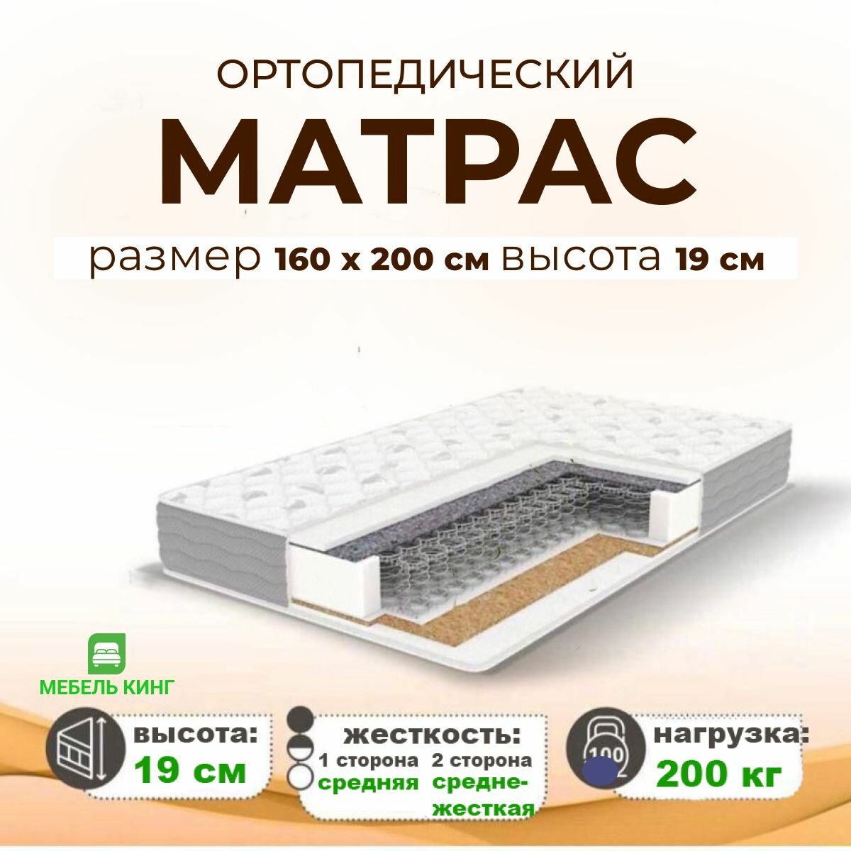 10 цен на Матрас ортопедический с кокосом, зависимые пружины, высота 19см, 160х200 см