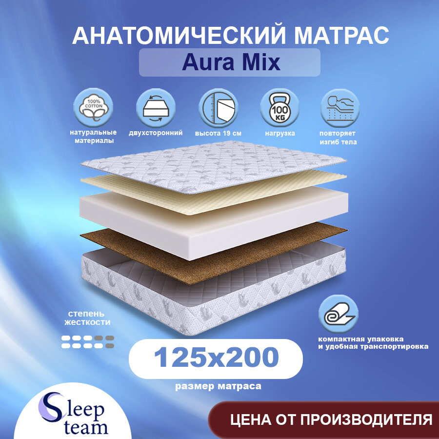 10 цен на Матрас SleepTeam Aura Mix 125х200, для кровати, высота 18 см, беспружинный с массажным эффектом, полутороспальный