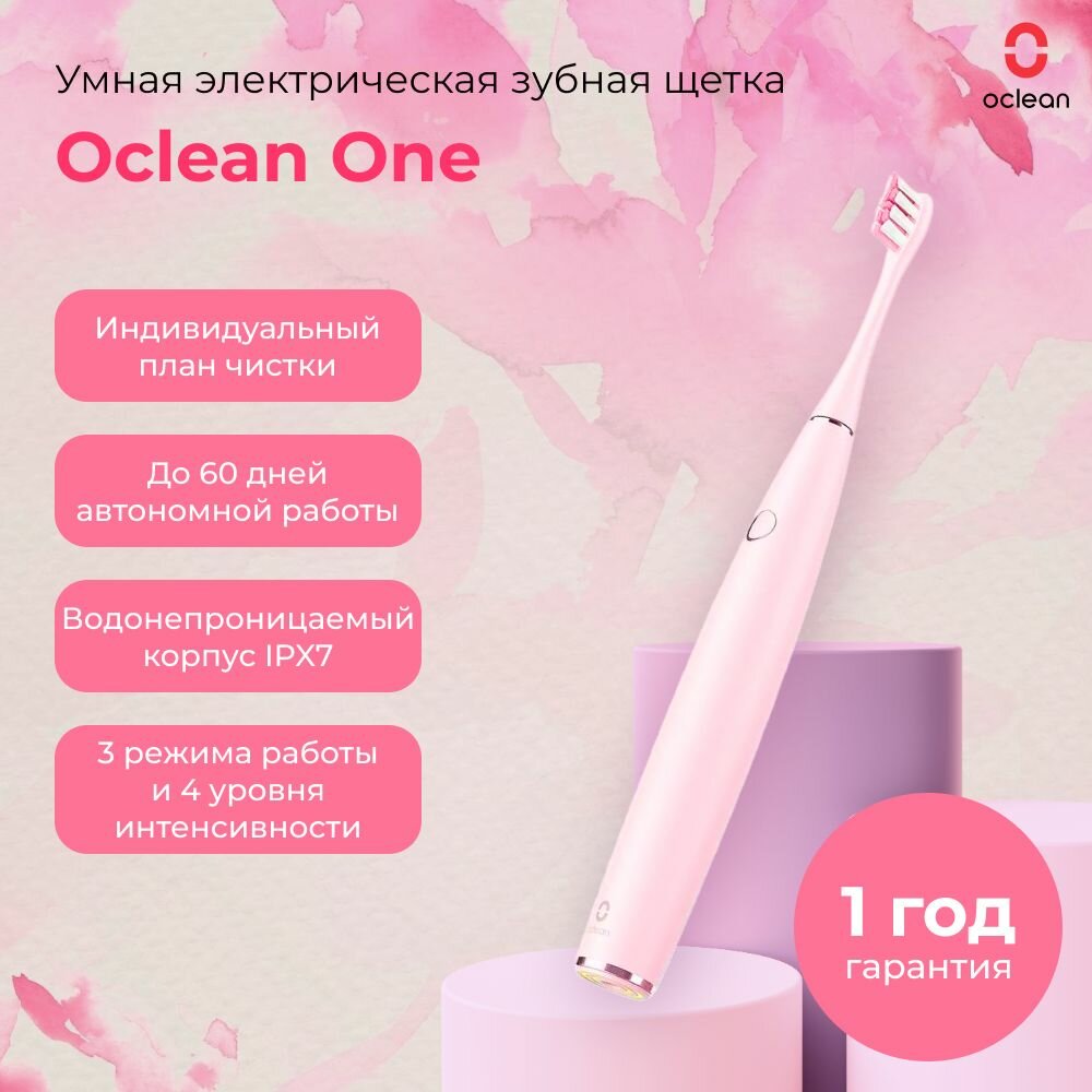 Электрическая зубная щетка Oclean One Smart Electric Toothbrush, 1 сменная насадка, 3 режима очистки, звуковая, управление через приложение, розовый