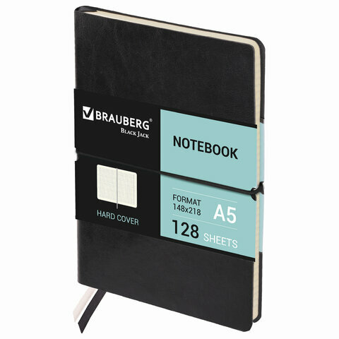 Блокнот А5 (148х218 мм), комплект 5 шт., BRAUBERG "Black Jack", 128 л., гладкий кожзам, резинка, клетка, черный, 125240 2 370 ₽