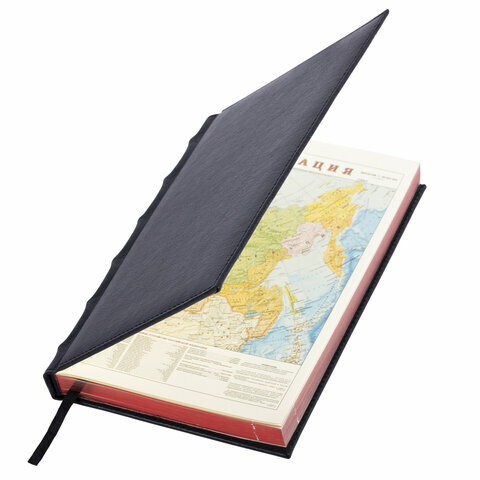 Ежедневник недатированный А5 138х213 мм BRAUBERG FLAME под кожу, 160 л., черный, красный срез, 123844