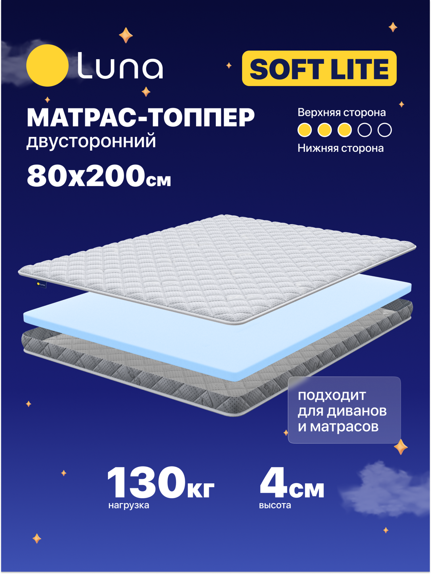 Матрас-топпер Luna Soft Lite 80х200 см двухсторонний, анатомический, высота 4 см информация: