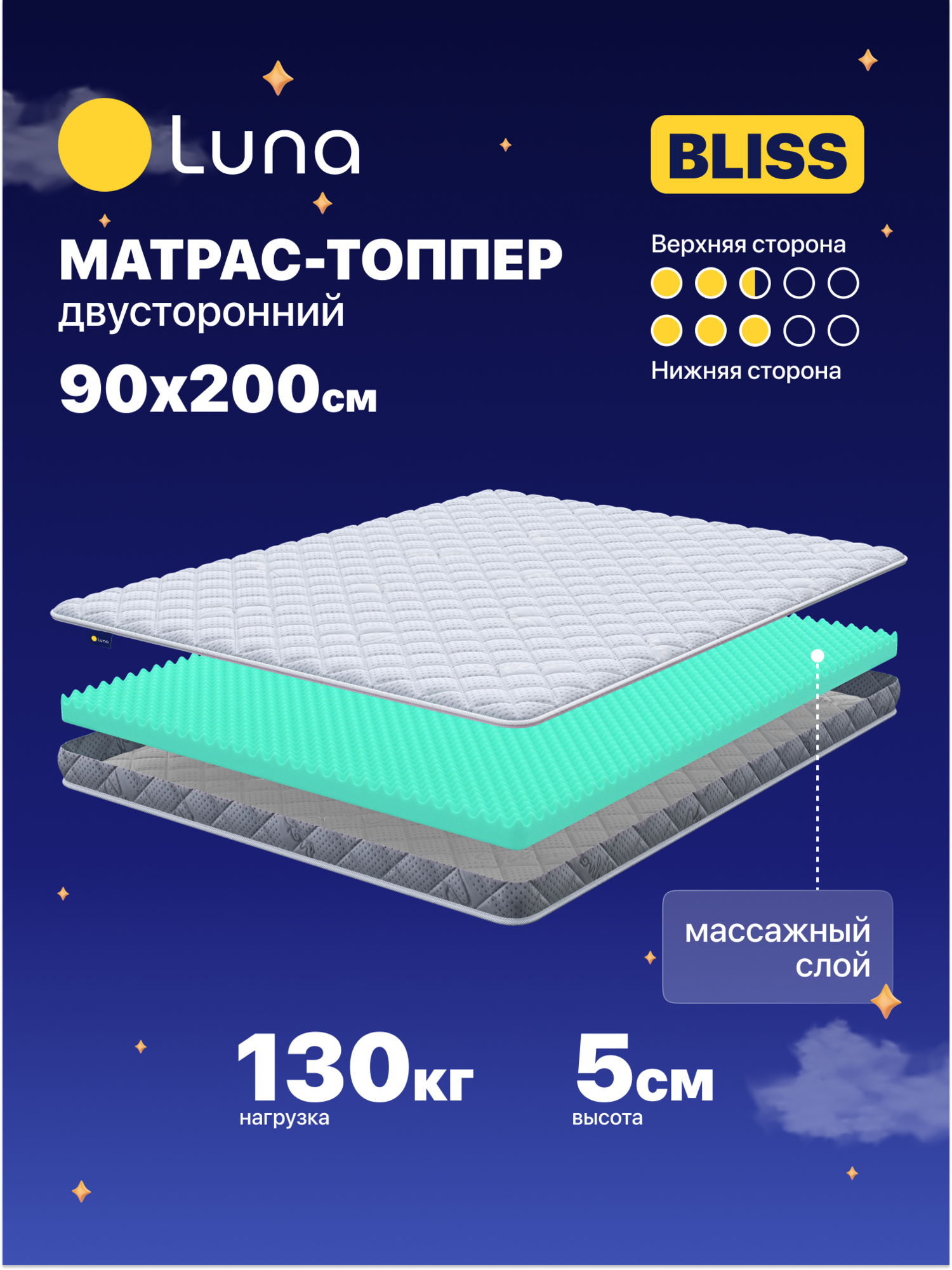 Матрас-топпер Luna Bliss 90х200 двухсторонний, с массажным эффектом, анатомический, высота 5 см информация: