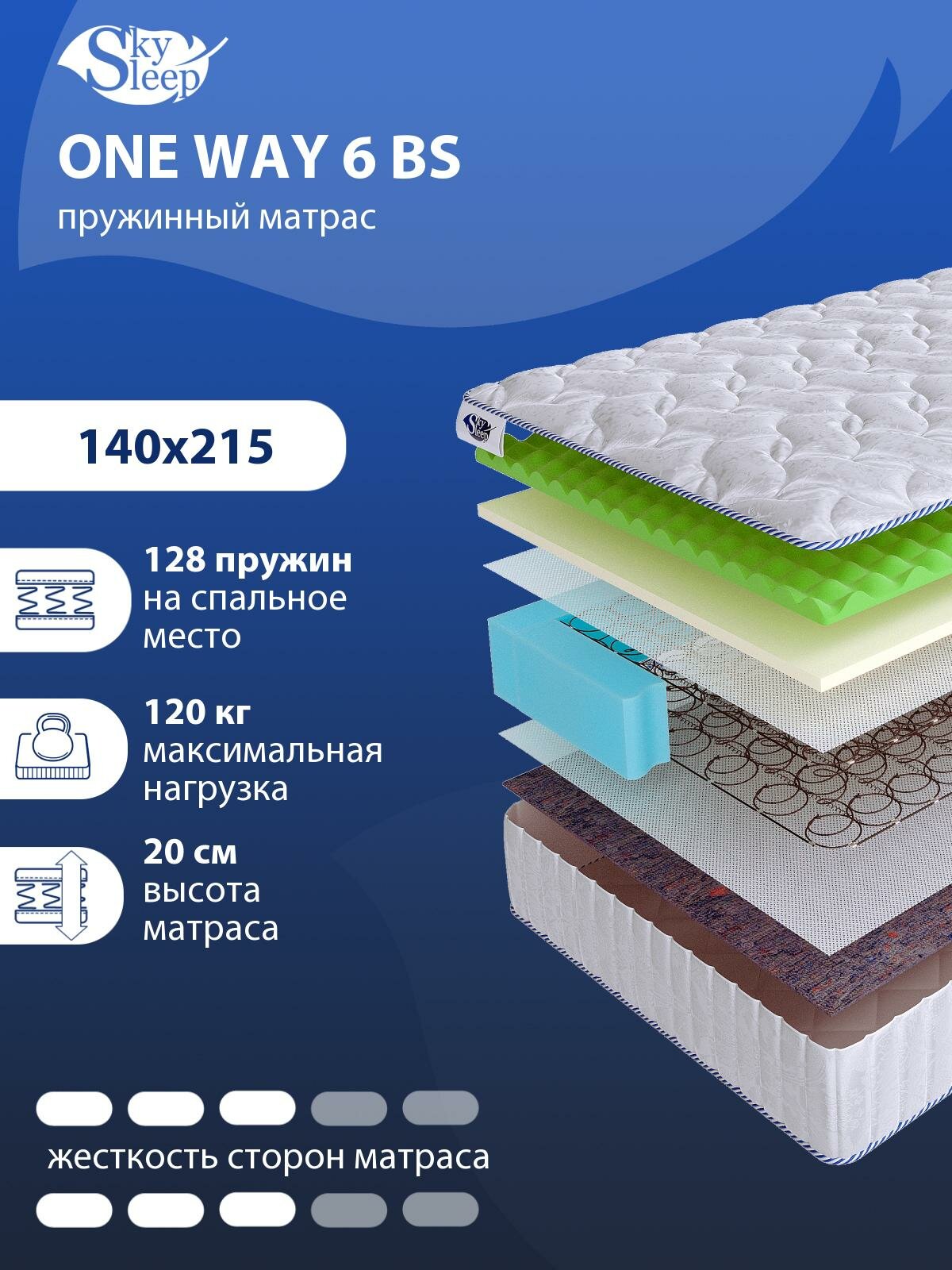 Односторонний ортопедический матрас SkySleep ONE WAY 6 BS на кровать 140x215 информация: