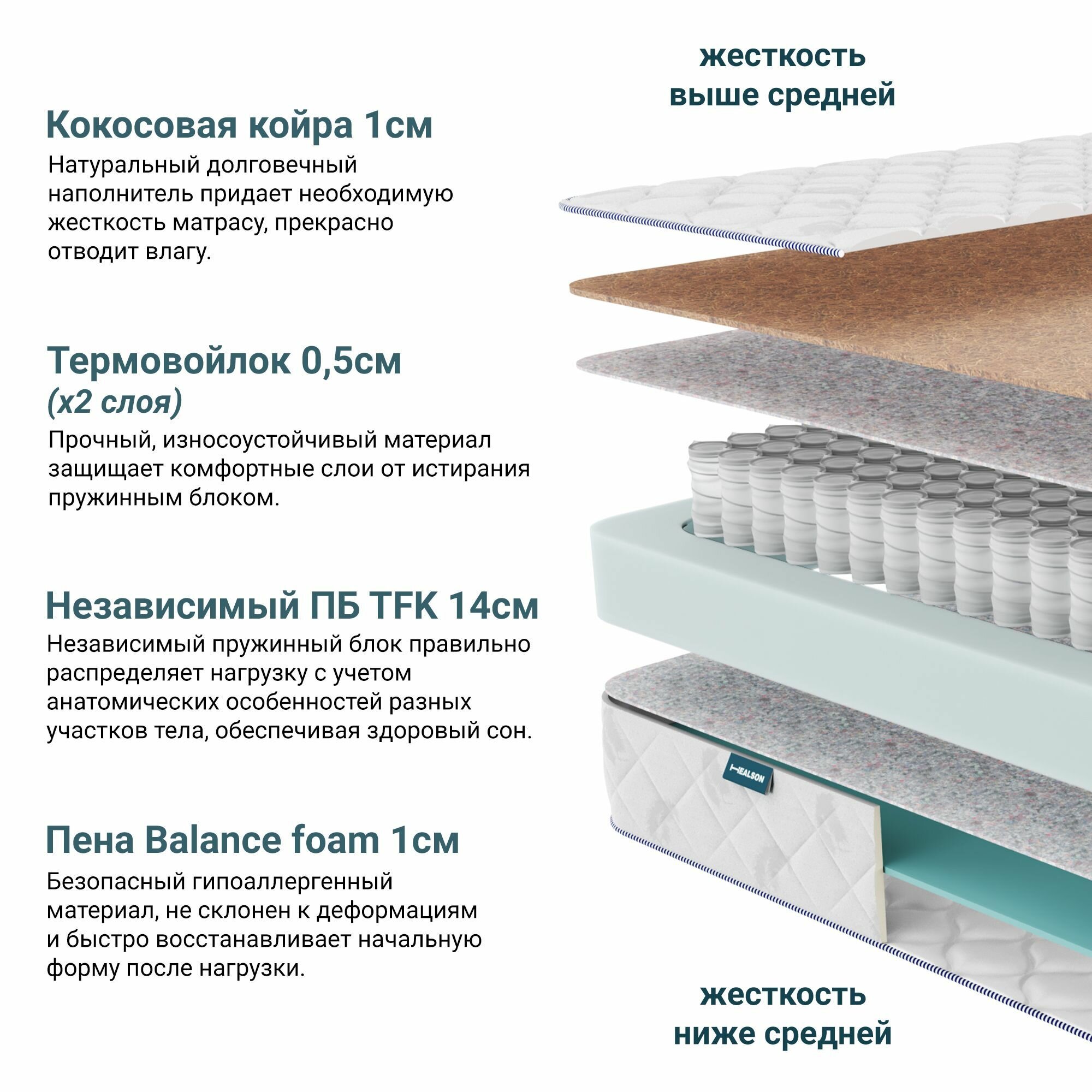Фабрика Сна Матрас EDMOND, независимые пружины, кокос, средняя жесткость, анатомический, 90х200 см