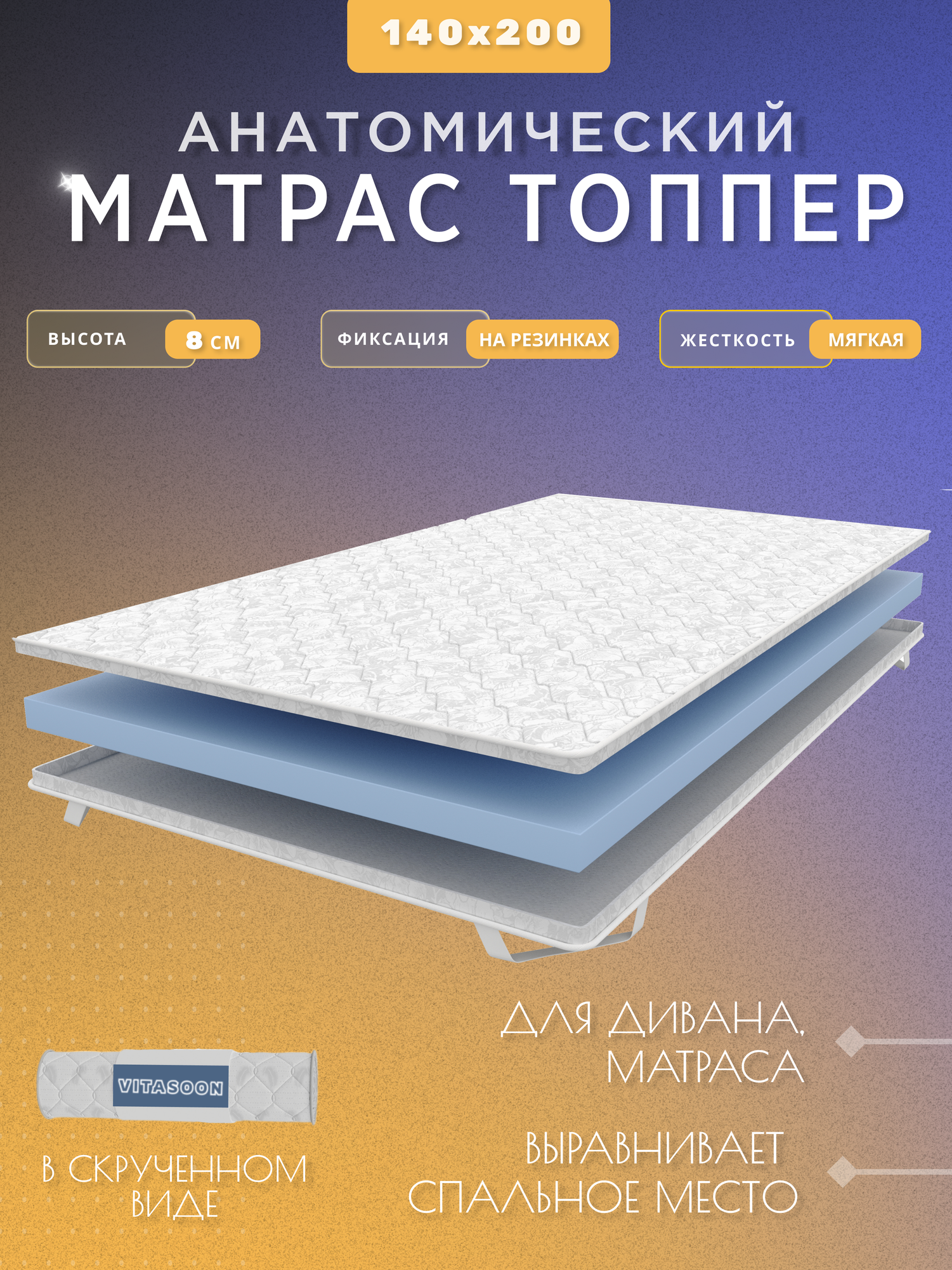 10 цен на Матрас-топпер ортопедический 140х200 см VitaSoon Sleep 8 Ck, беспружинный, с резинками, на кровать, на диван, в рулоне