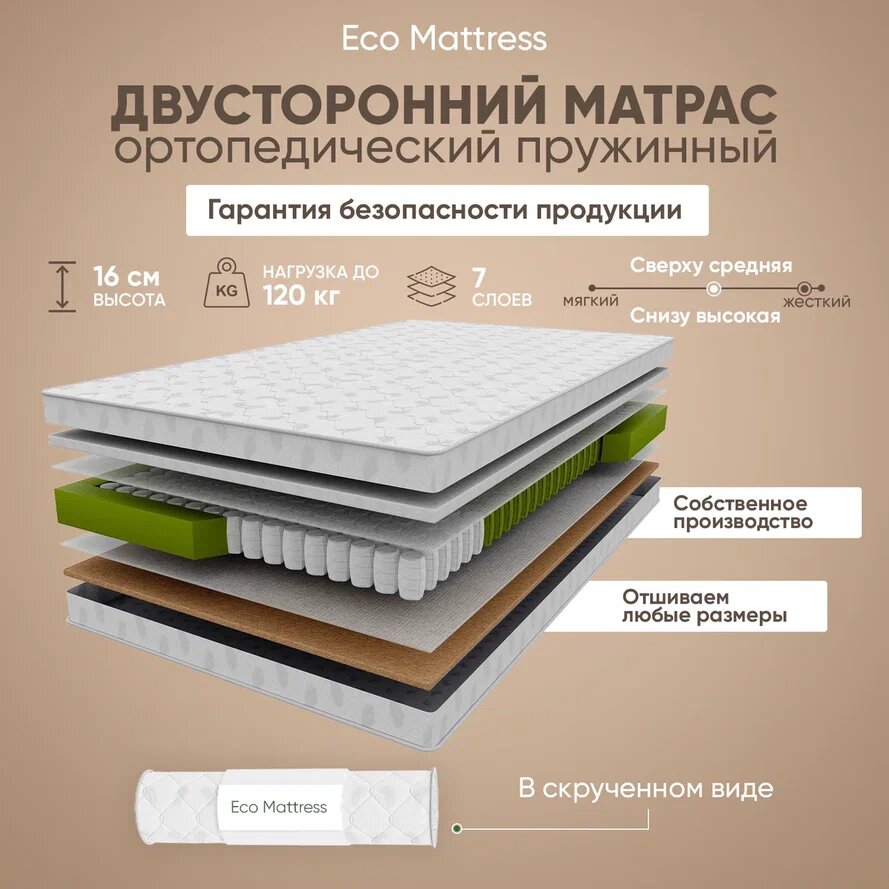 10 цен на Ортопедический пружинный матрас Eco Mattress C12Sk 145x195 см, ППУ, полуторный, с кокосом, разной жесткости, в рулоне