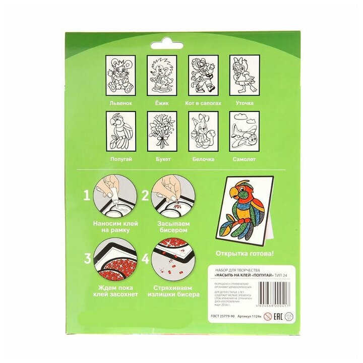Набор для творчества Насыпь На Клей Попугай информация: