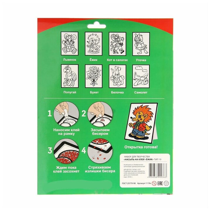 Набор для творчества Насыпь На Клей Ёжик информация: