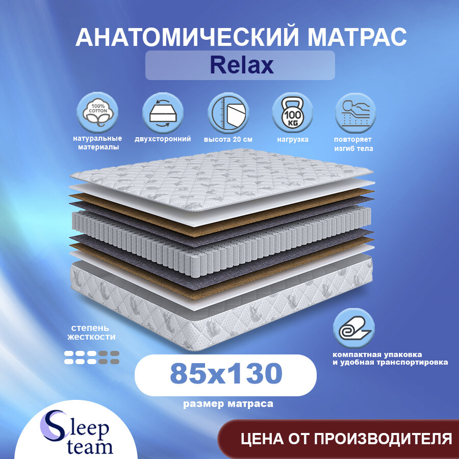 Матрас детский SleepTeam Relax 85х130, пружинный, высота 19 см, односпальный информация: