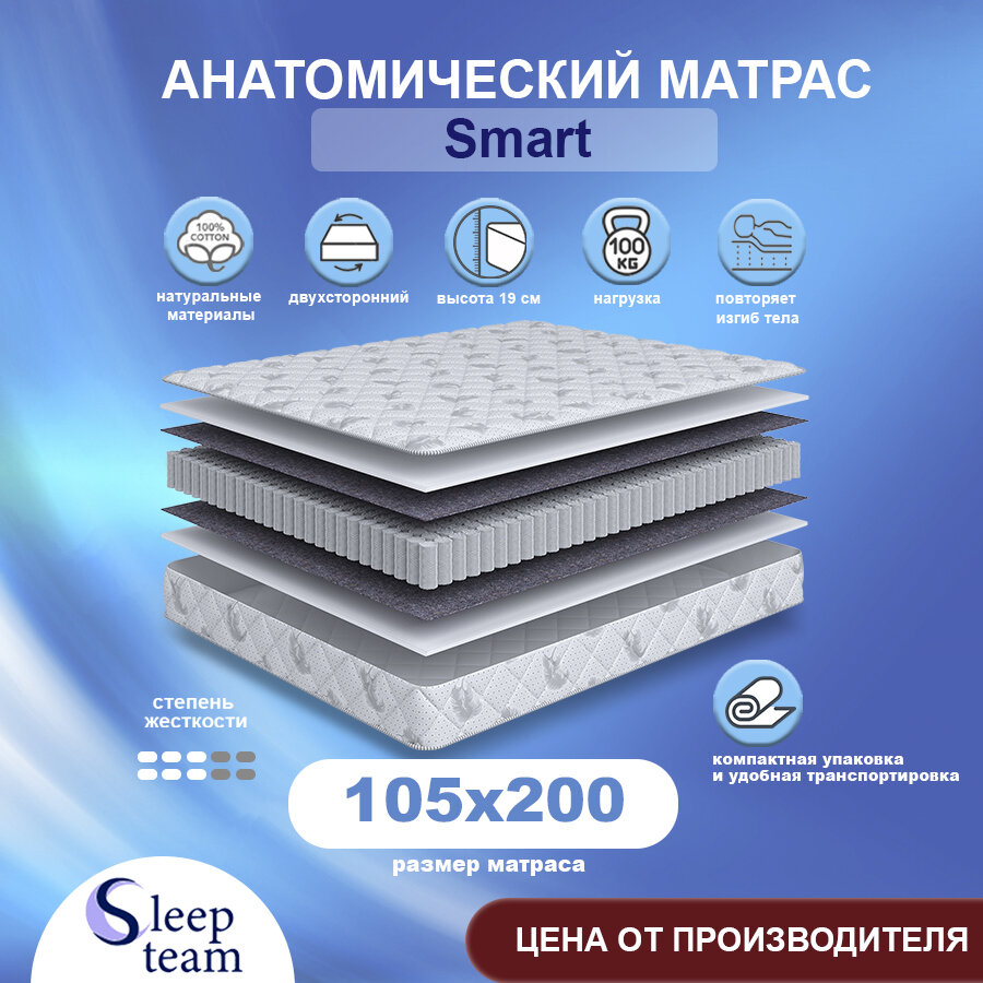 Матрас SleepTeam Smart 105х200, пружинный, высота 19 см, односпальный информация:
