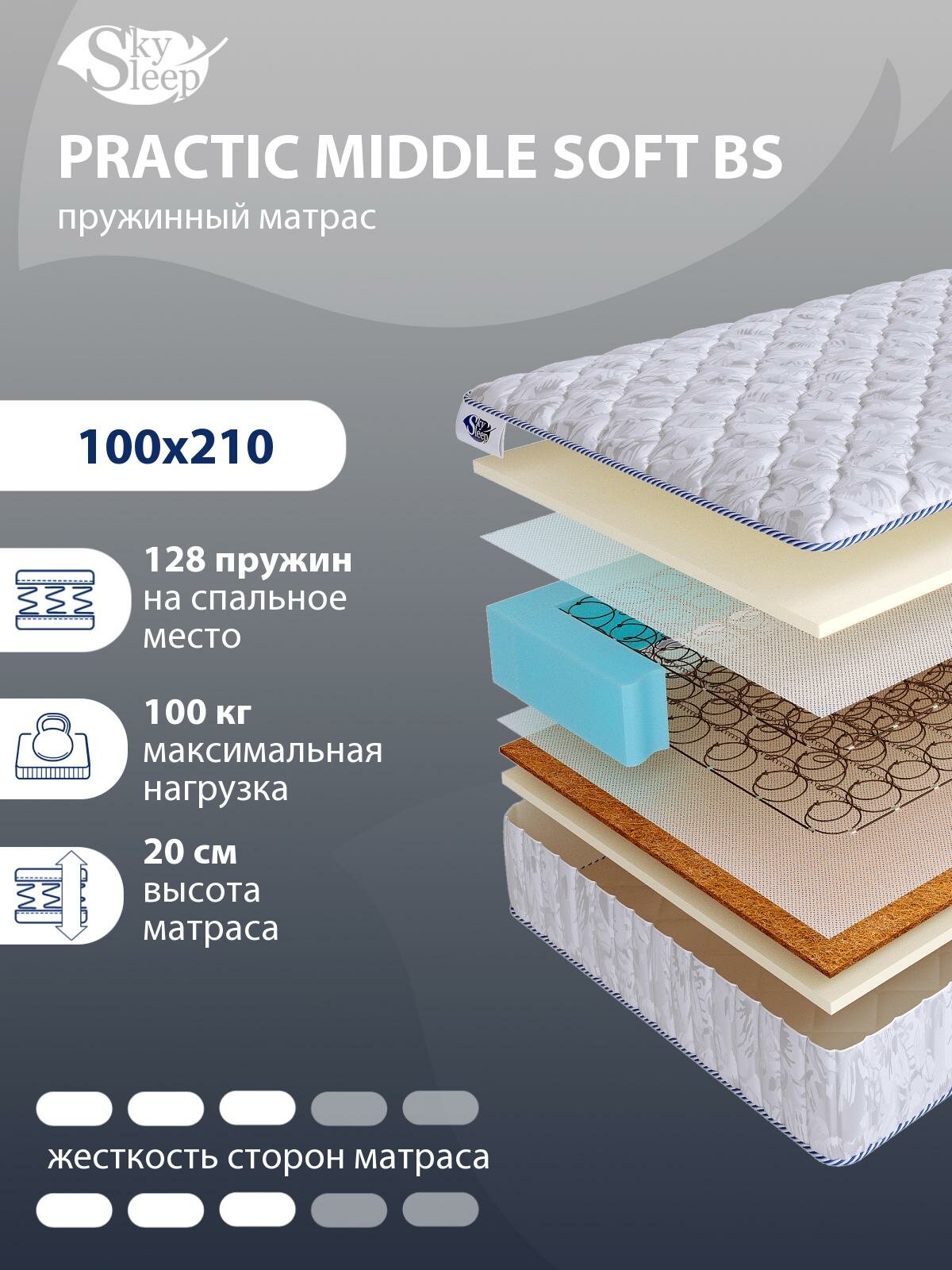 10 цен на Ортопедический матрас SkySleep PRACTIC MIDDLE SOFT BS с зависимым пружинным блоком для кровати тахты 100x210
