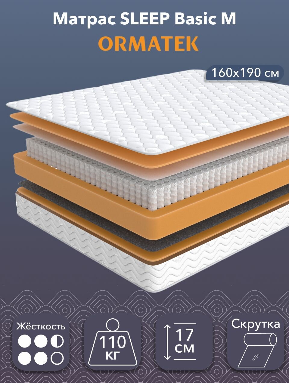 10 цен на Орматек Матрас SLEEP Basic M, Независимые пружины, 160х190 см, Двуспальный двусторонний анатомический матрас на кровать