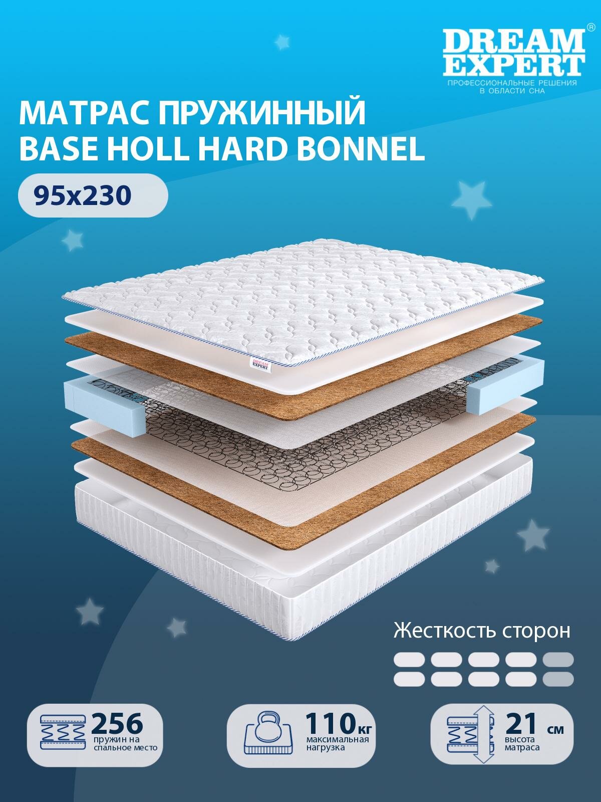 10 цен на Матрас, Ортопедический матрас DreamExpert Base Holl Hard Bonnel выше средней жесткости, односпальный, зависимый пружинный блок, на кровать 95x230