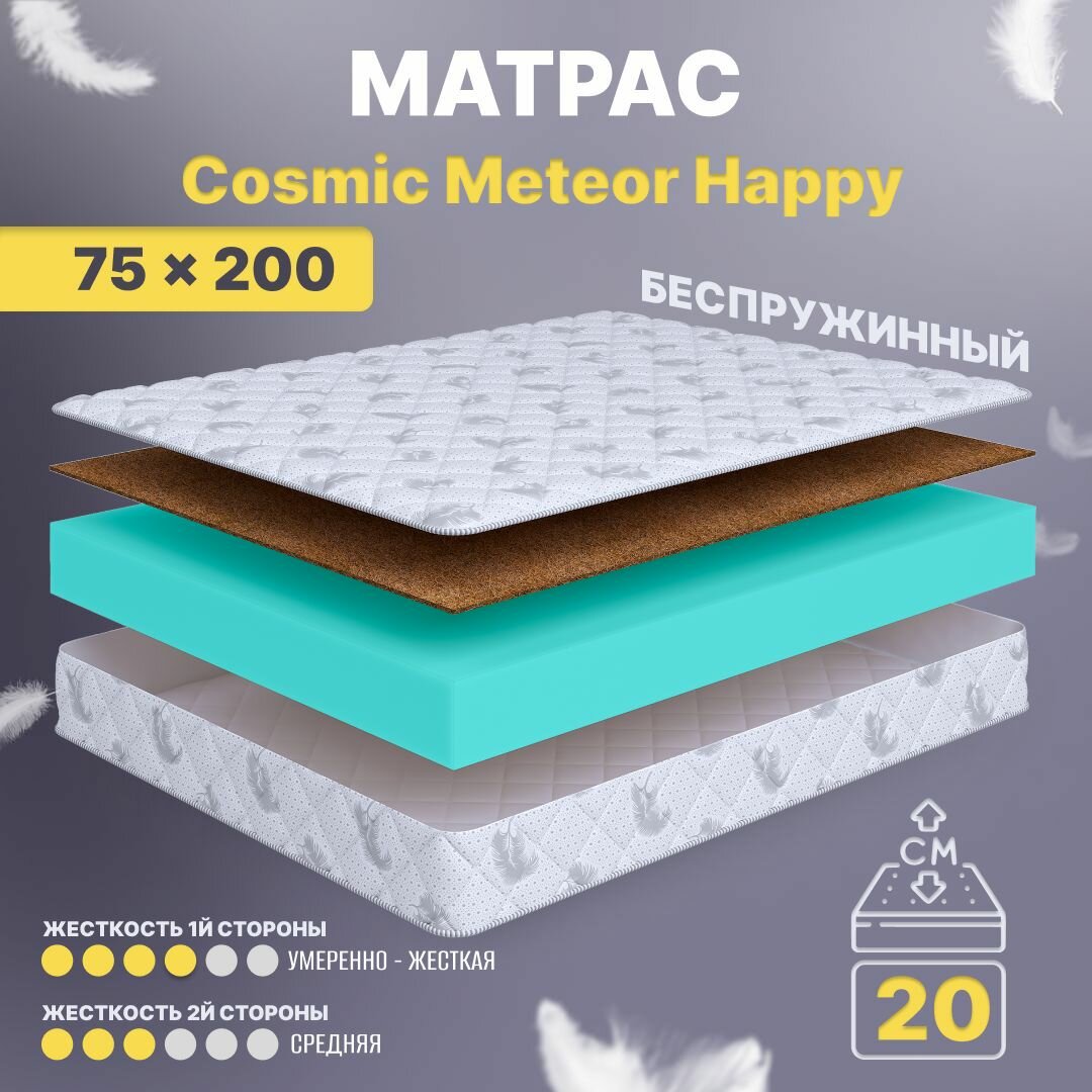 Матрас 75х200 беспружинный детский анатомический в кроватку, Cosmic Meteor Happy, средне-жесткий 20 см информация: