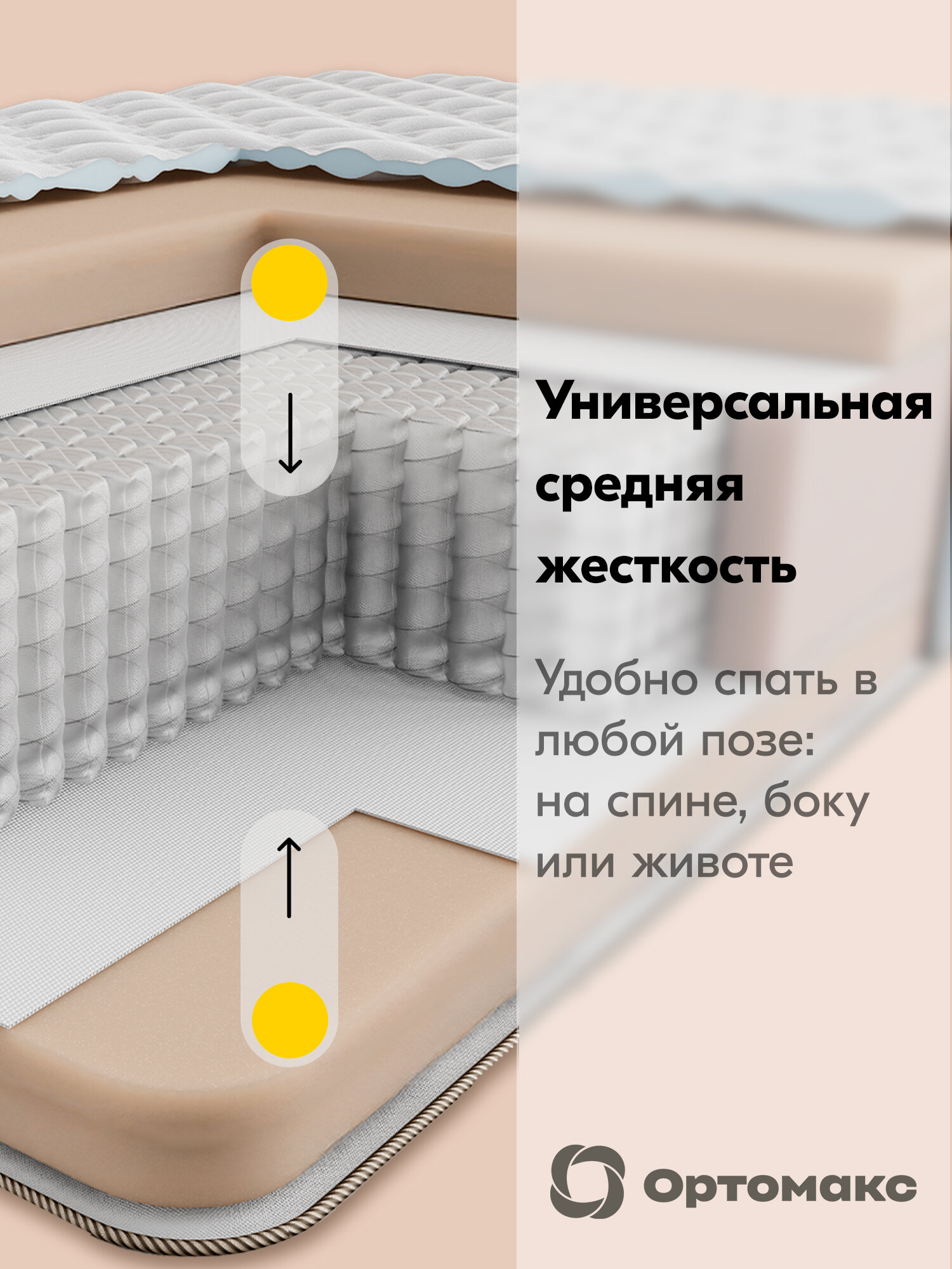 Элитный высокий матрас 160х190 ортопедический, средней жесткости Ortomax Hi-End с независимыми пружинами, высота 40 см 67 378 ₽
