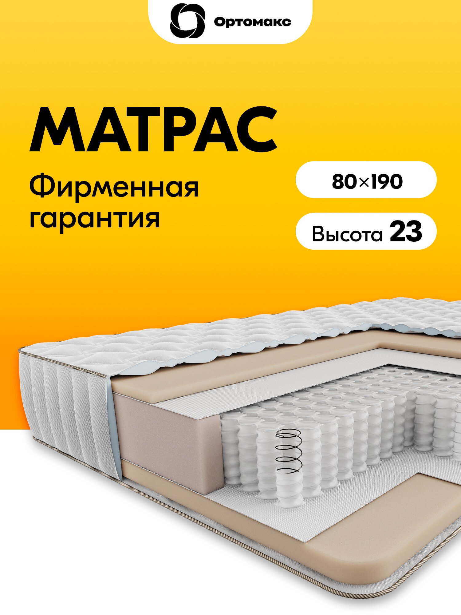 10 цен на Премиальный матрас 80х190 ортопедический пружинный средней жесткости Ortomax Multi 21 S500 спальный, для кровати