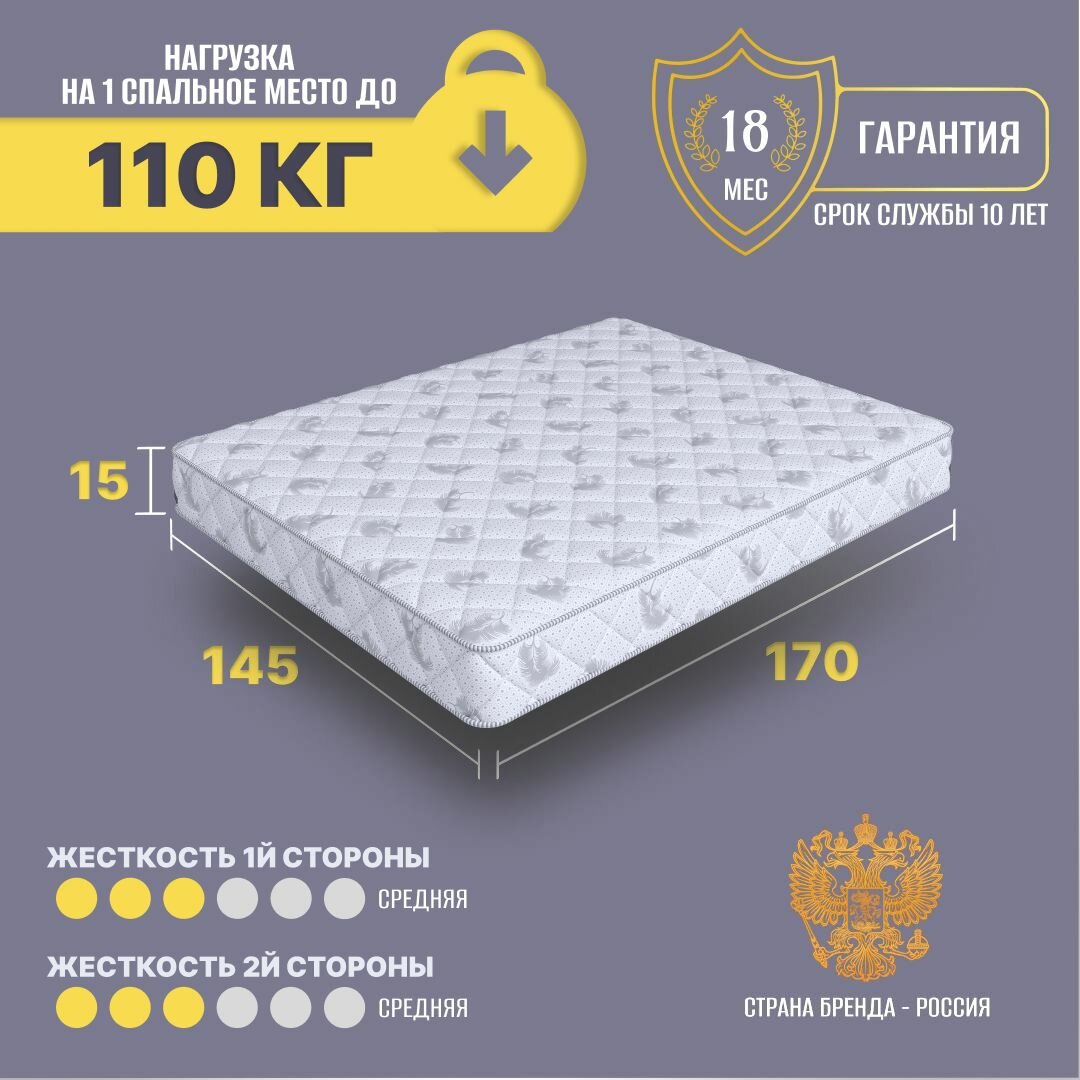 Матрас беспружинный 145х170, для кровати, Cosmic Lua анатомический, 15 см, двуспальный, средней жесткости информация: