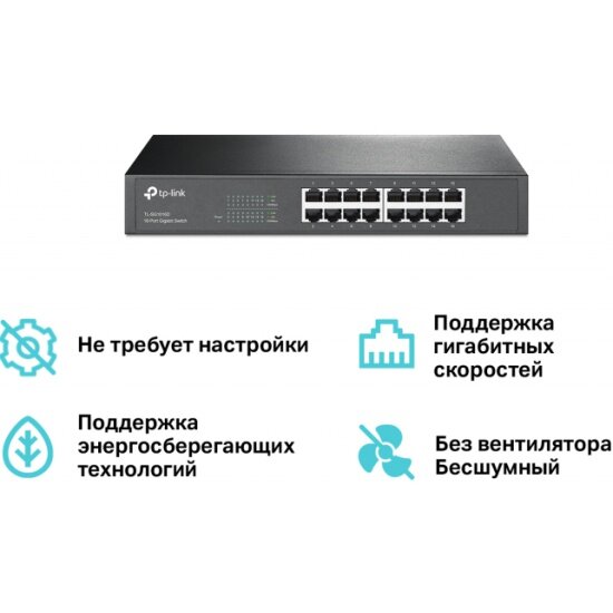 Коммутатор TP-LINK TL-SG1016D 16 ports Switch Ethernet 10/100/1000M информация: