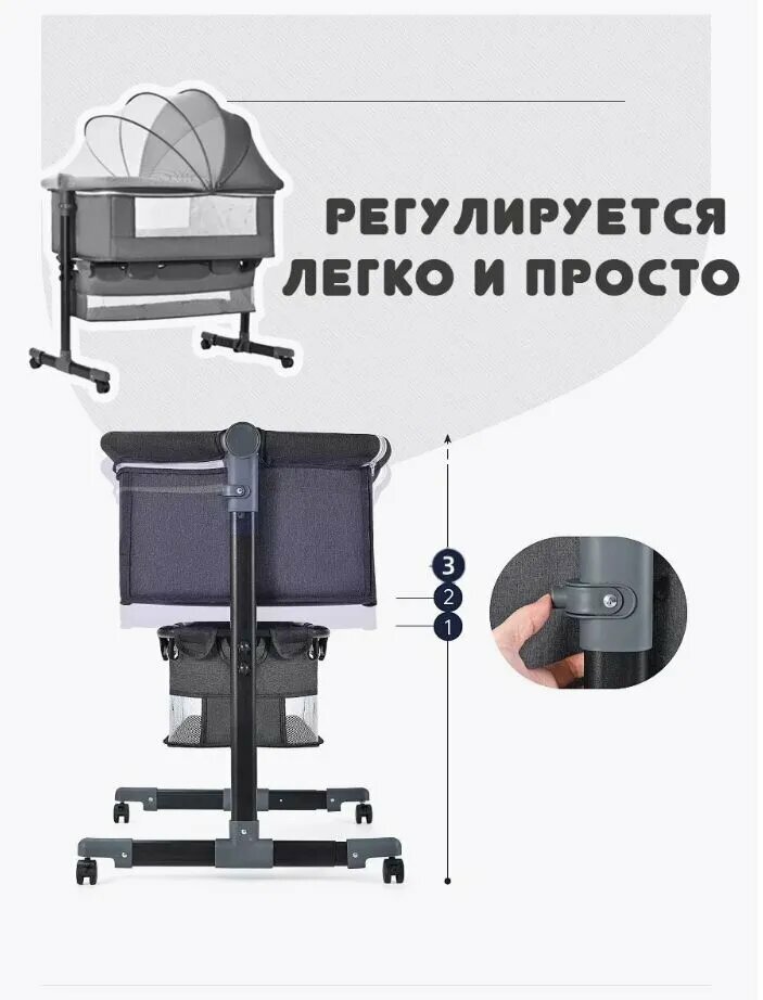 Колыбель, складная, москитная сетка в комплекте, маятниковая система качания, серая информация:
