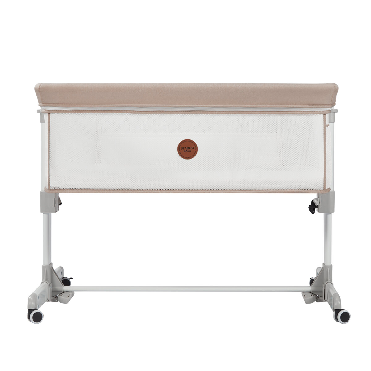 Кроватка детская для новорожденного Dearest приставная с матрасом, с москитной сеткой, с маятником, бежевый информация: