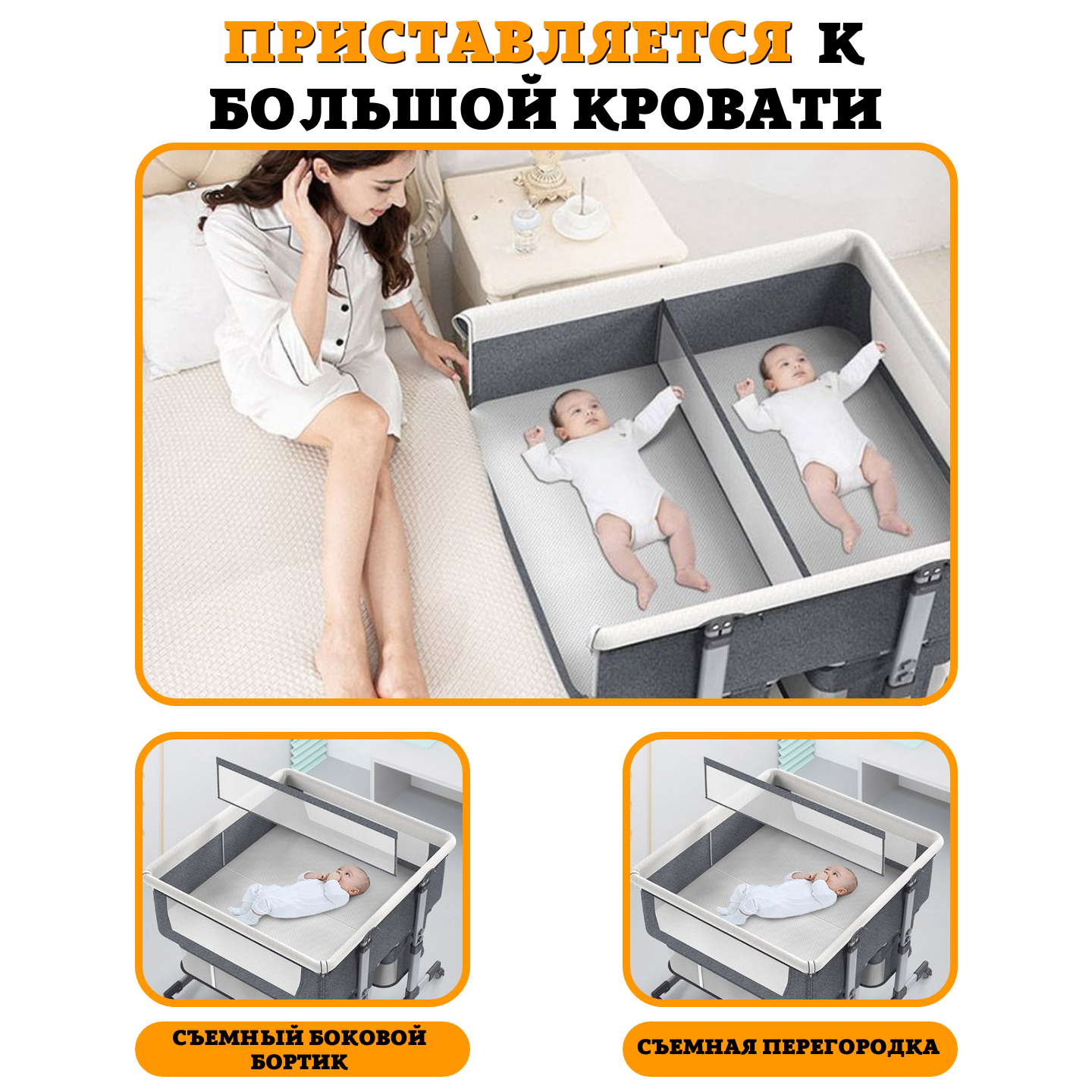 10 цен на Детская колыбель для новорожденных Floopsi. Колыбель-кроватка для двойни. Детская приставная кроватка для двойни.