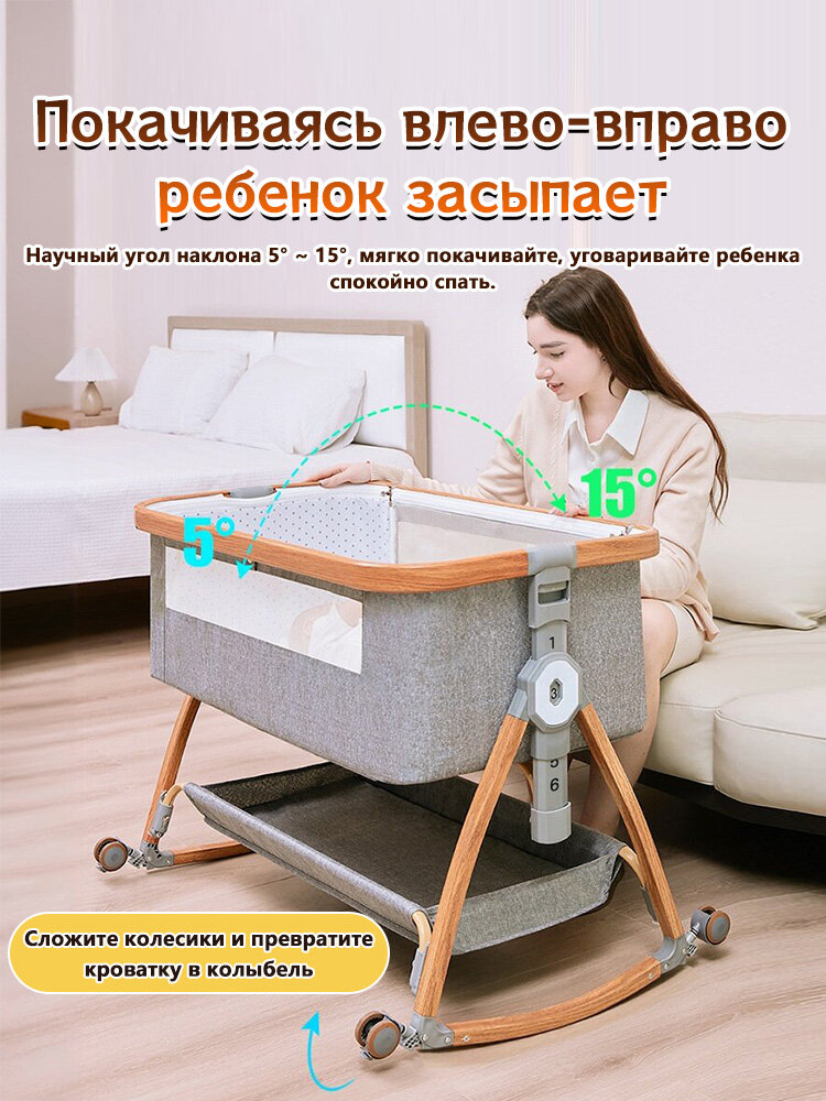 Многофункциональная кроватка из алюминиевого сплава, кроватку-колыбельку можно передвигать и складывать, текстура дерева 16 946 ₽
