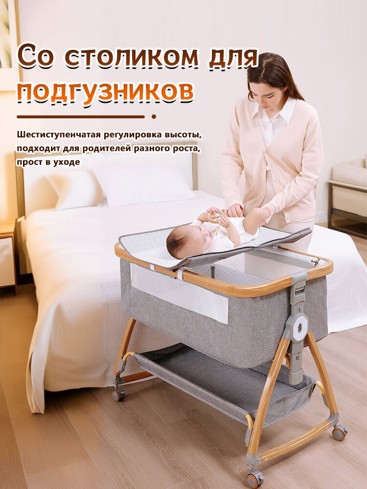 Многофункциональная кроватка из алюминиевого сплава, кроватку-колыбельку можно передвигать и складывать, текстура дерева 16 946 ₽