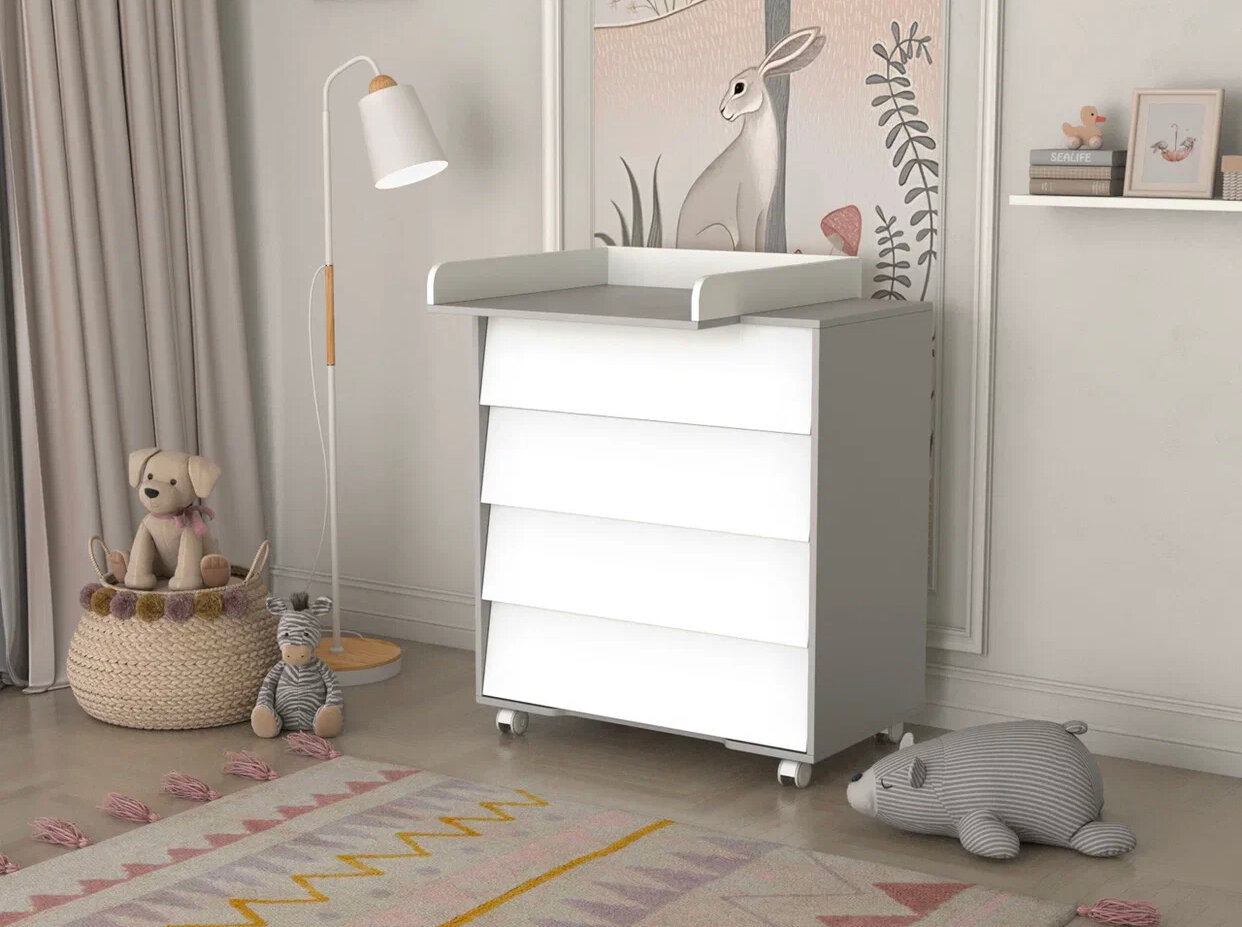 10 цен на Комод пеленальный для новорожденных на колесах Серый/Белый 4 ящика
