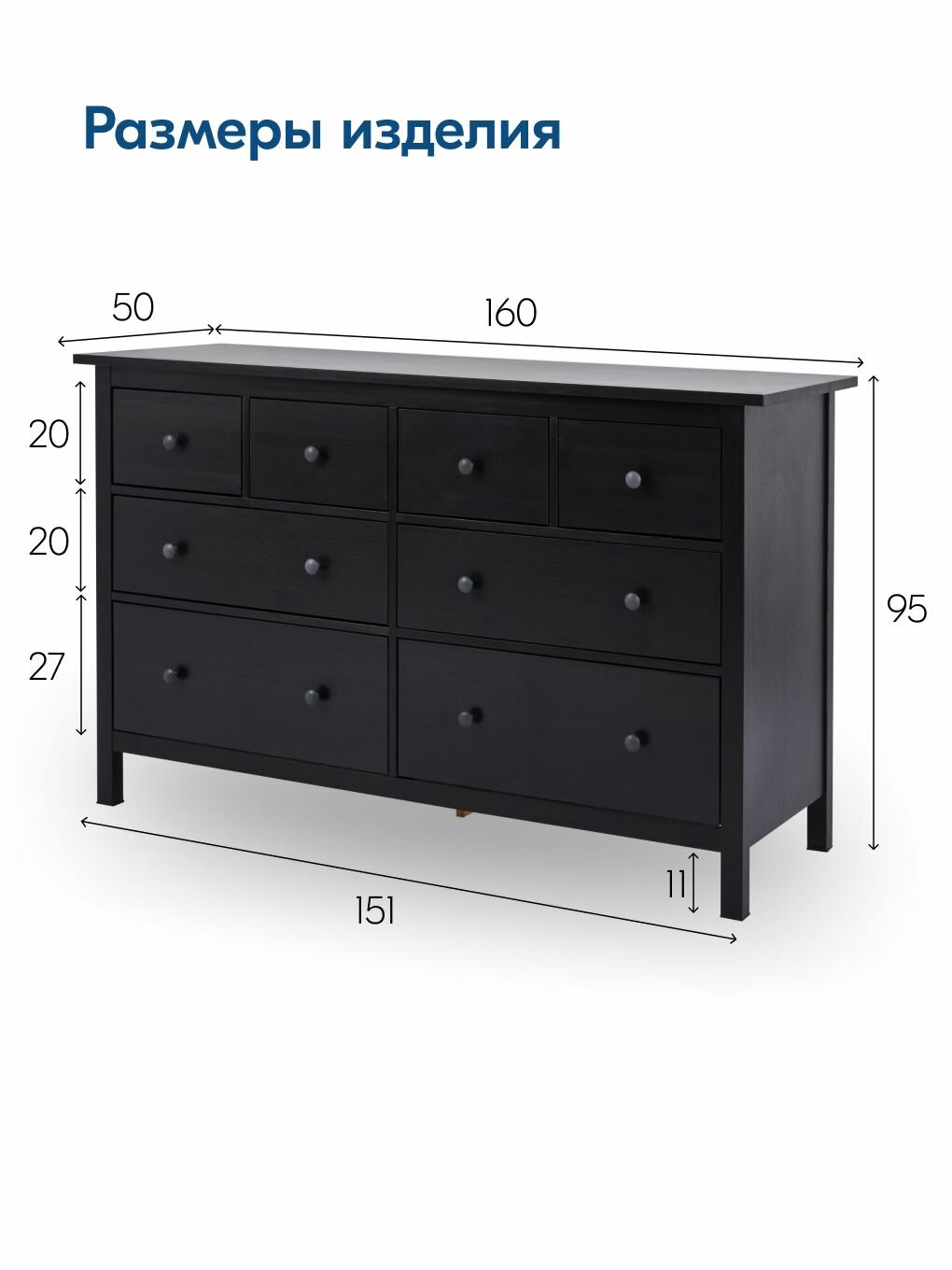 Комод КЫМОР 8 ящиков 160х96х50 цвет чёрный, из массива дерева информация: