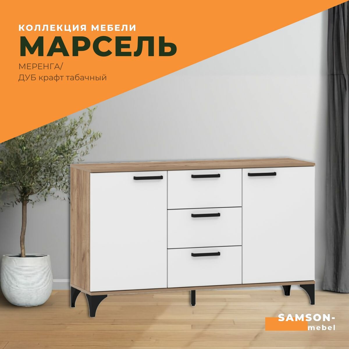 Комод (тумба) Марсель (Меренга (ПВХ), Дуб Крафт Табачный) информация: