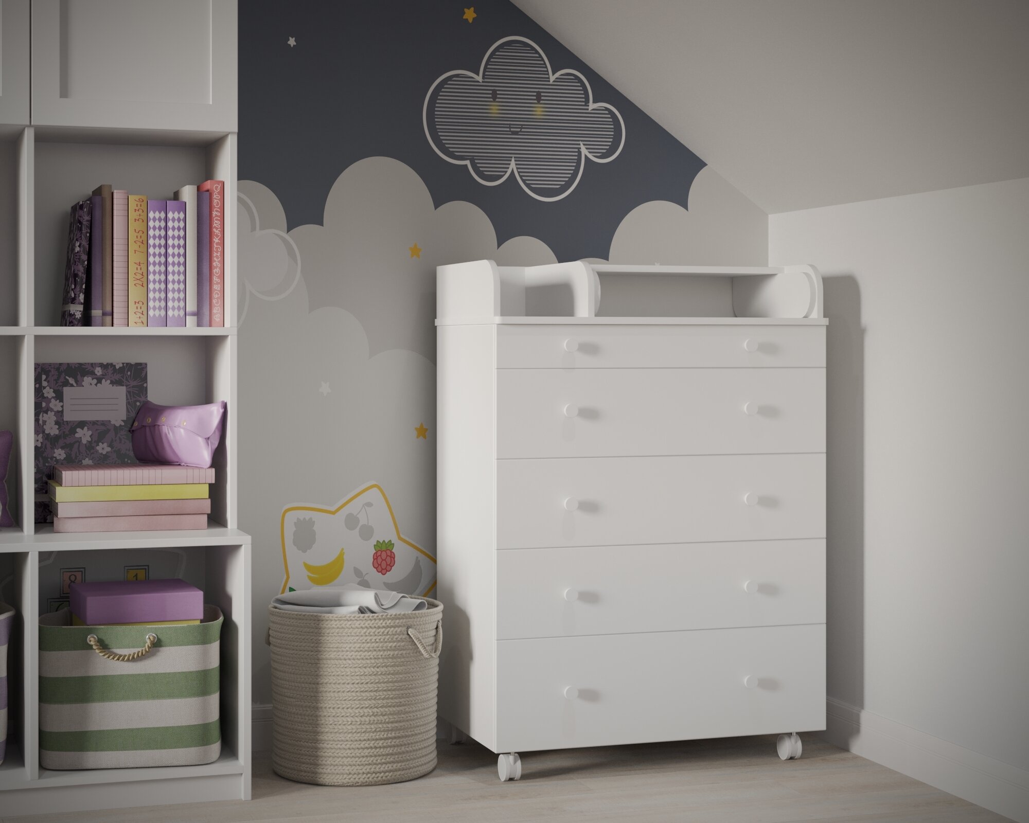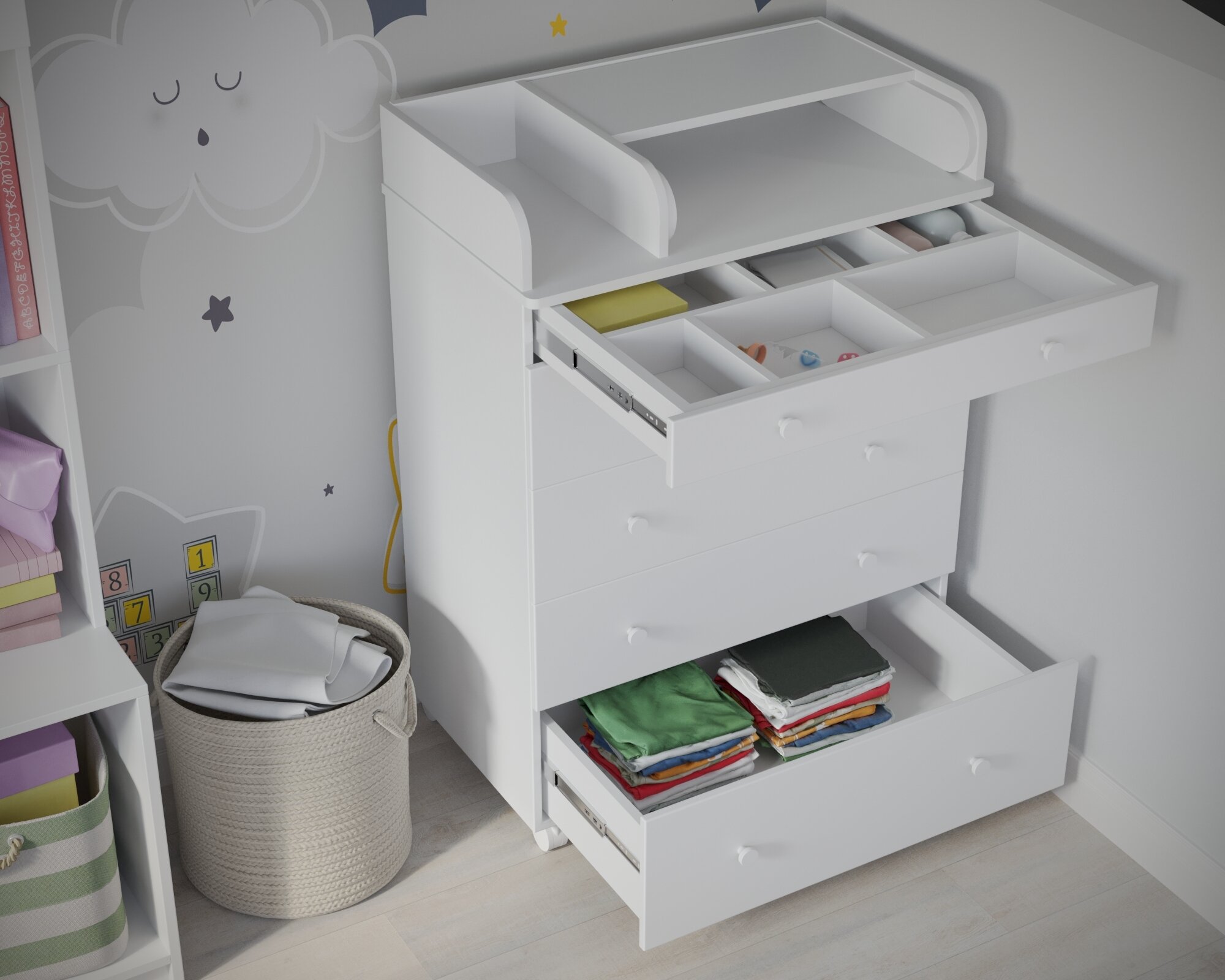Пеленальный комод для новорожденных INCANTO Oskar, на колесиках, белый, 5 ящиков, с пеленальным столиком информация:
