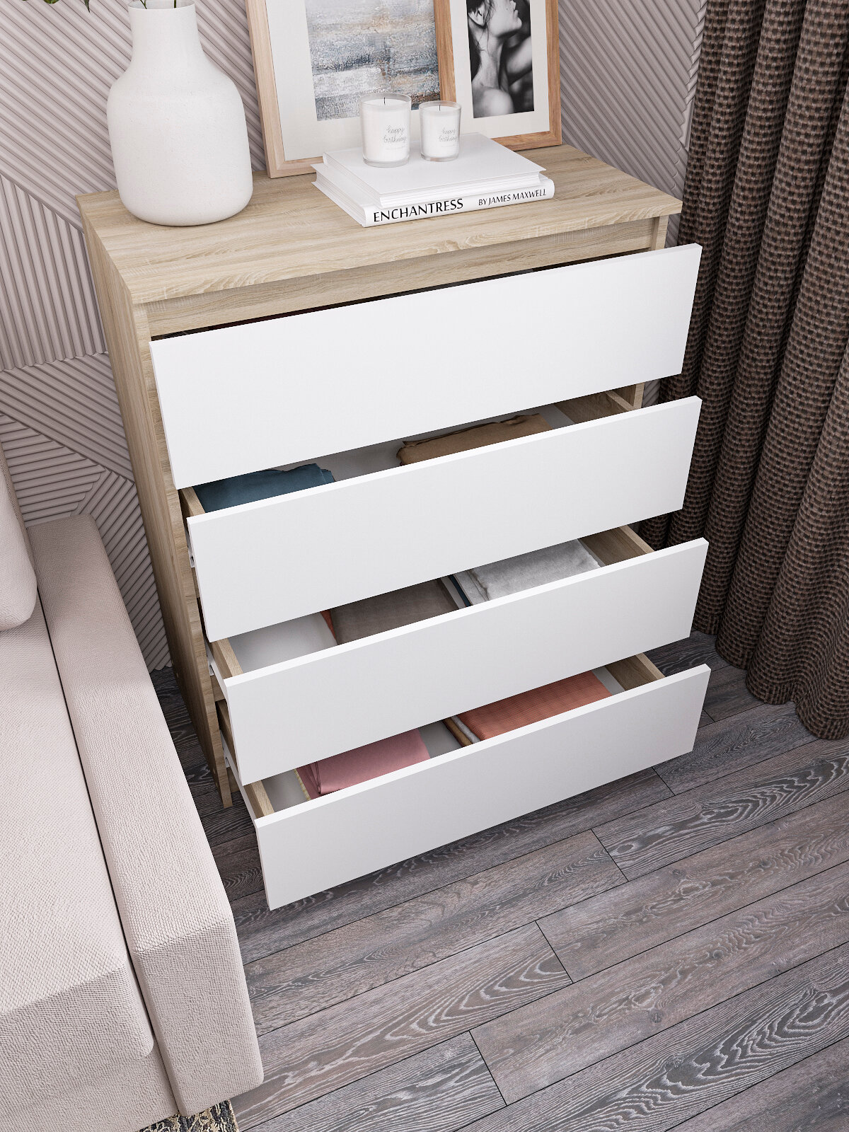 Комод для одежды Дуб сонома/белый 80 см 4 ящика информация: