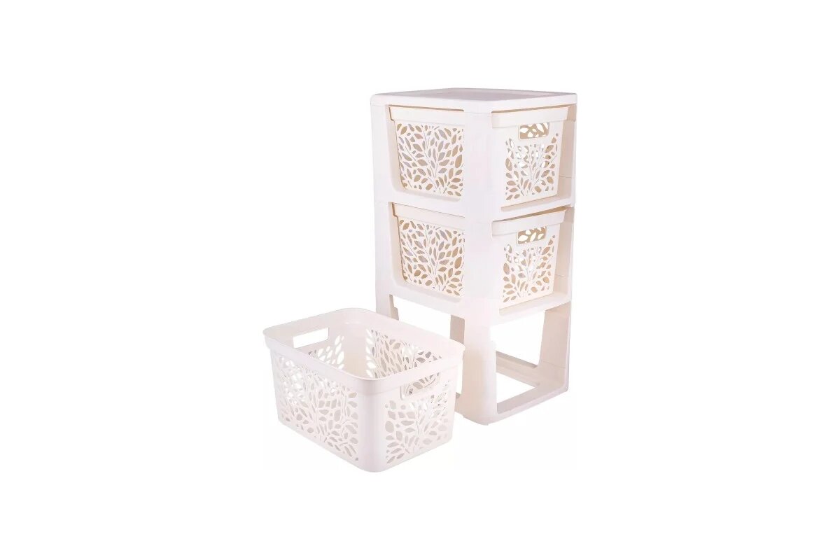 Полимербыт Комод на колесах 3 ящика по 18л Leaves (молочный) 439300000 информация: