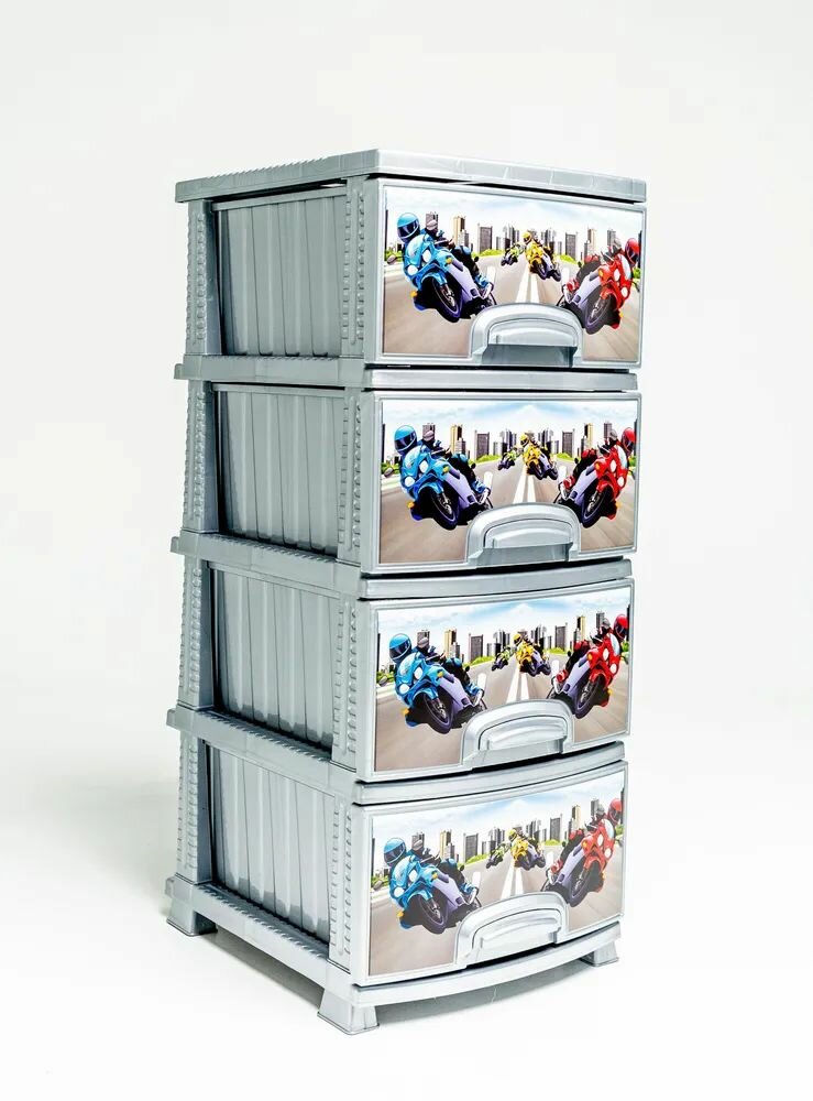 Характиристики этого товара не найдены!Отзывы на Яркий комод детский комод "Мото" (красный, синий, серый) 380*470*950 мм, 4 вместительных ящика