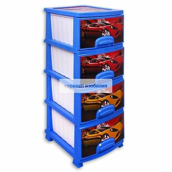 Яркий комод детский комод "Тачки" (голубой) 380*470*950 мм, 4 вместительных ящика информация: